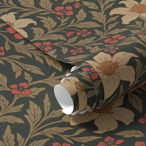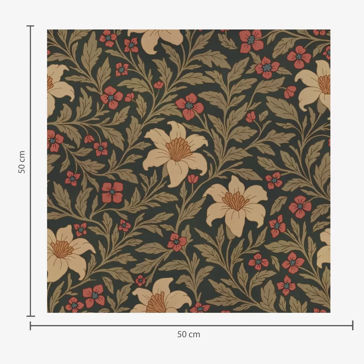 Tapeta Тамна позадина са жутим и црвеним цвећем у стилу арт нувоа бр. a00293