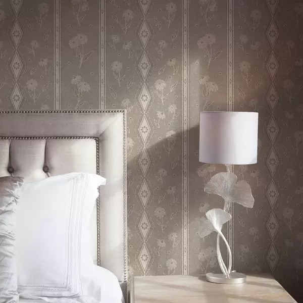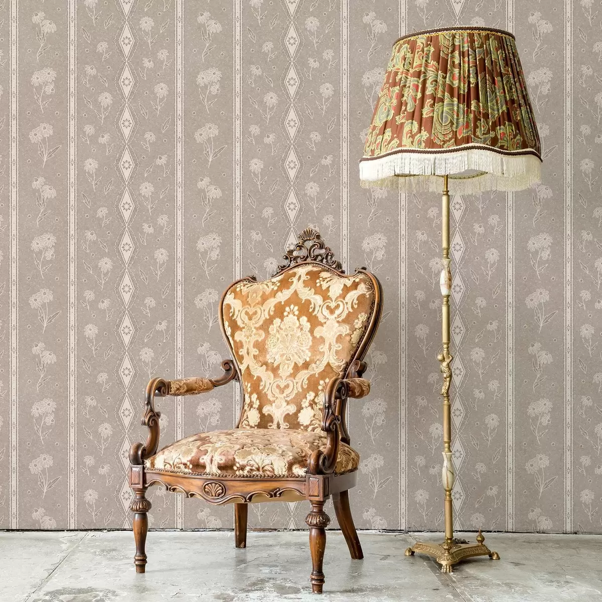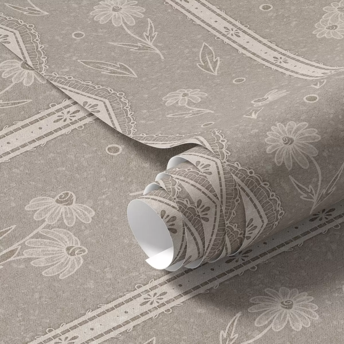 Tapeta Пруге са тратинчицама и чипком на сиво-беж позадини бр. a00295