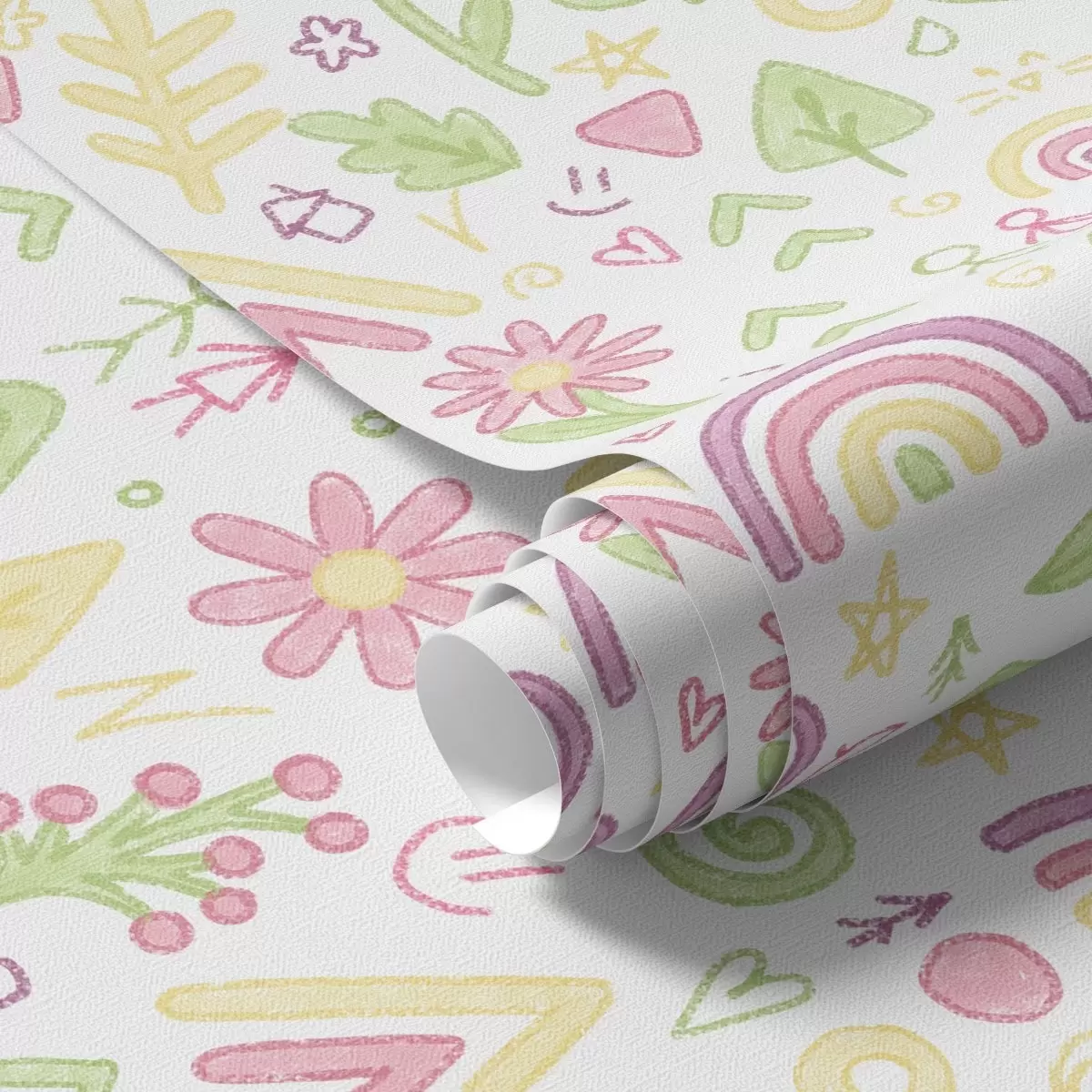 Tapeta Дечји цртеж са дугама, цвећем и дрвећем бр. a00296