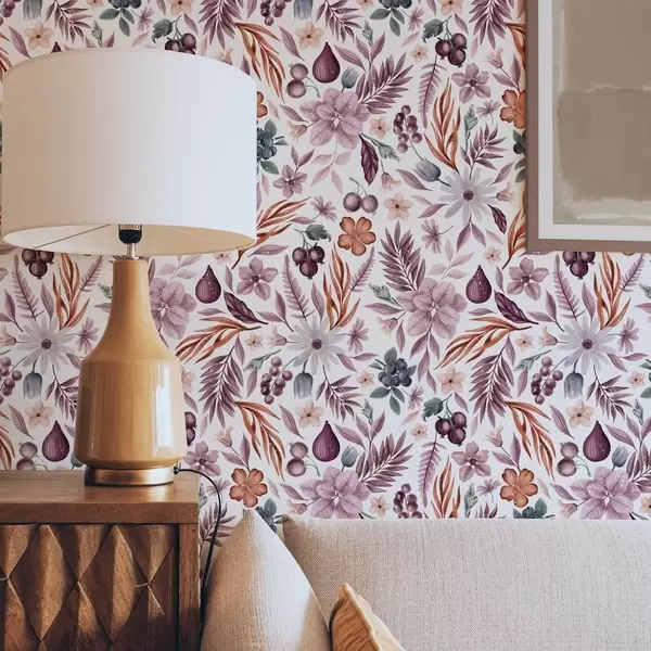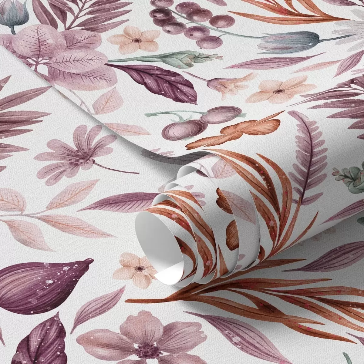 Tapeta Светле бобице, цвеће и лишће у стилу акварела бр. a00298