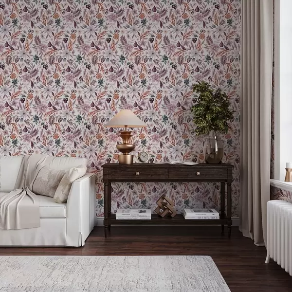 Tapeta Светле бобице, цвеће и лишће у стилу акварела бр. a00298