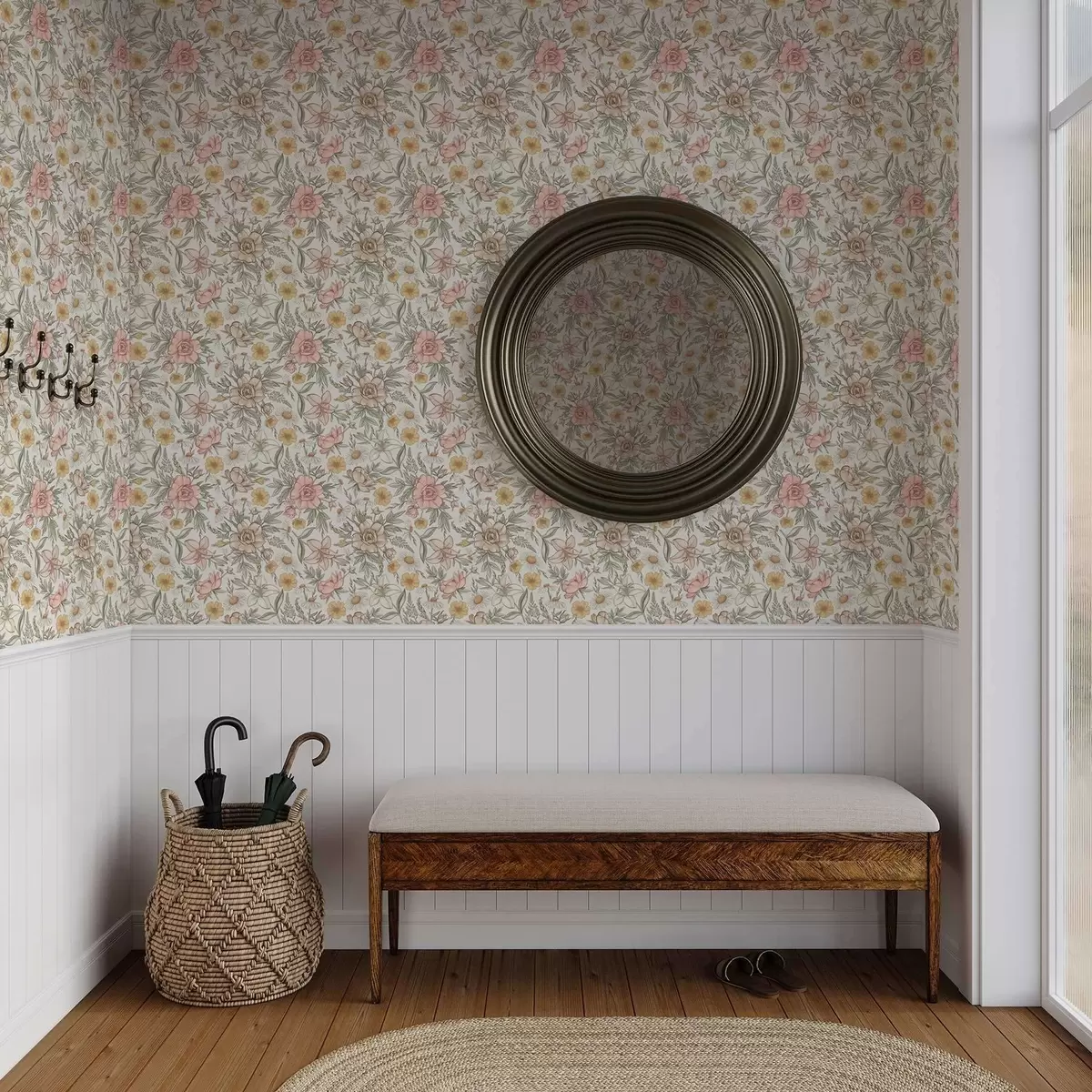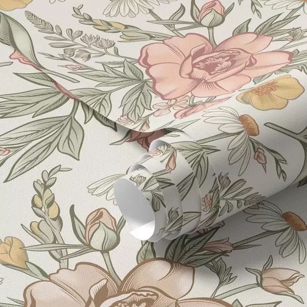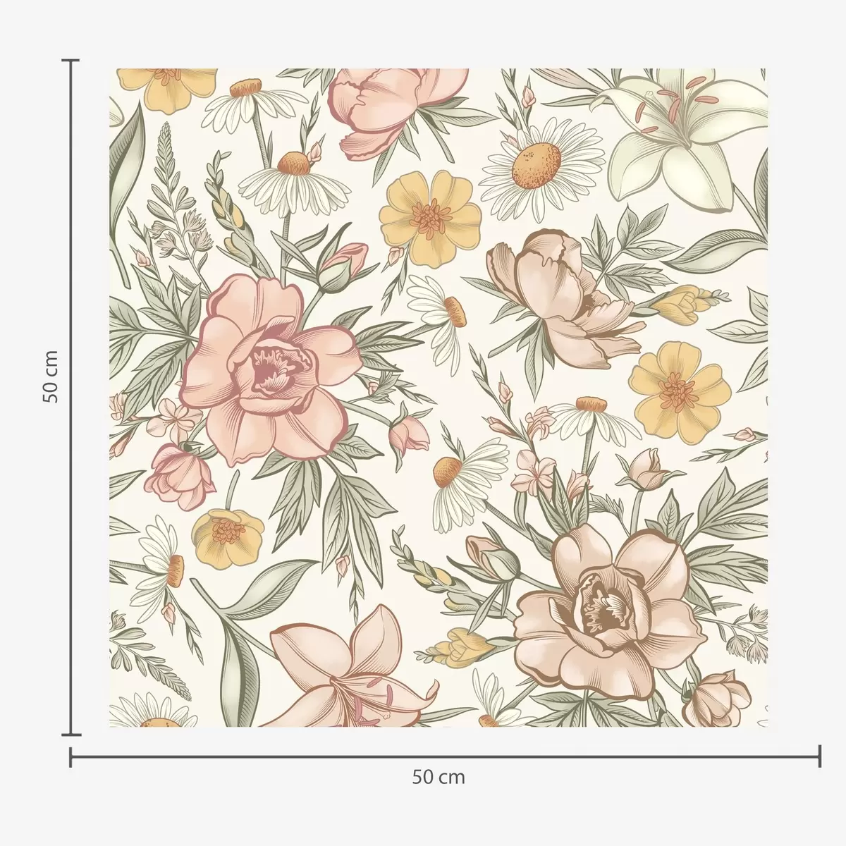 Tapeta Тратинчице, божури, љиљани и лишће у нежним бојама бр. a00299