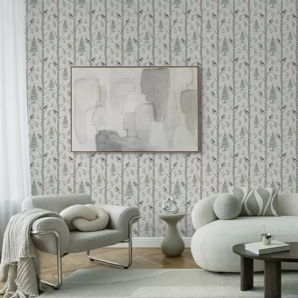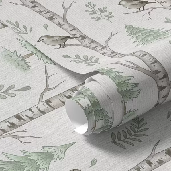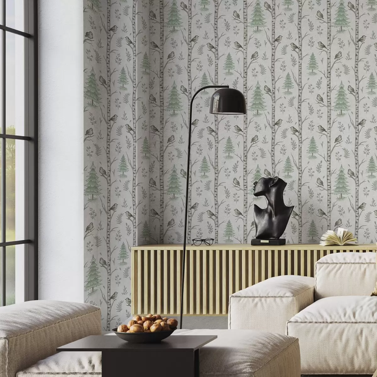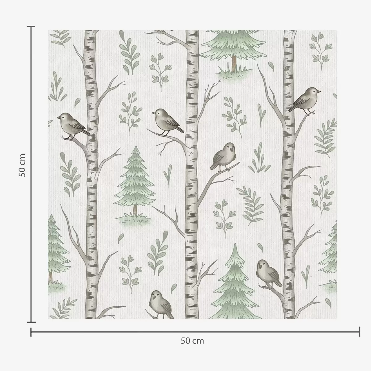 Tapeta Брезе са птицама у светлозеленој шуми бр. a00316