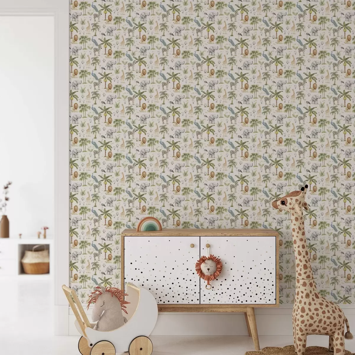 Tapeta Афричке животиње међу палмама и егзотичним биљкама бр. a00321