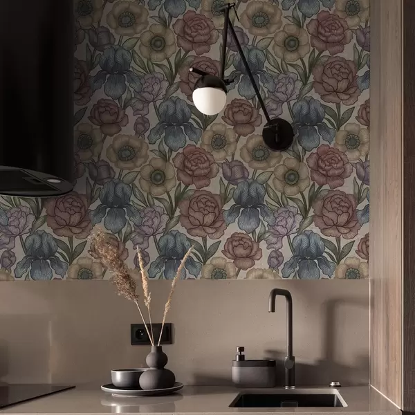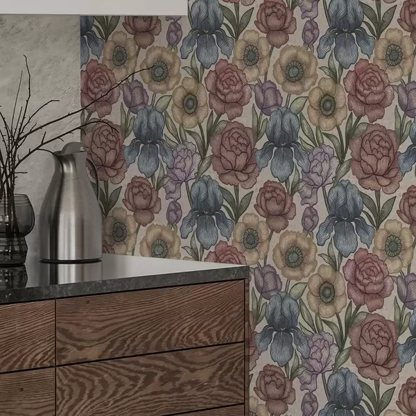 Tapeta Велике цветне илустрације са ирисима и божурима бр. a00325