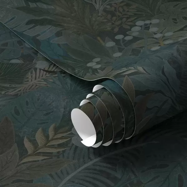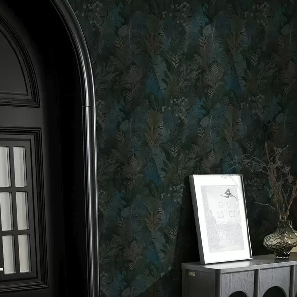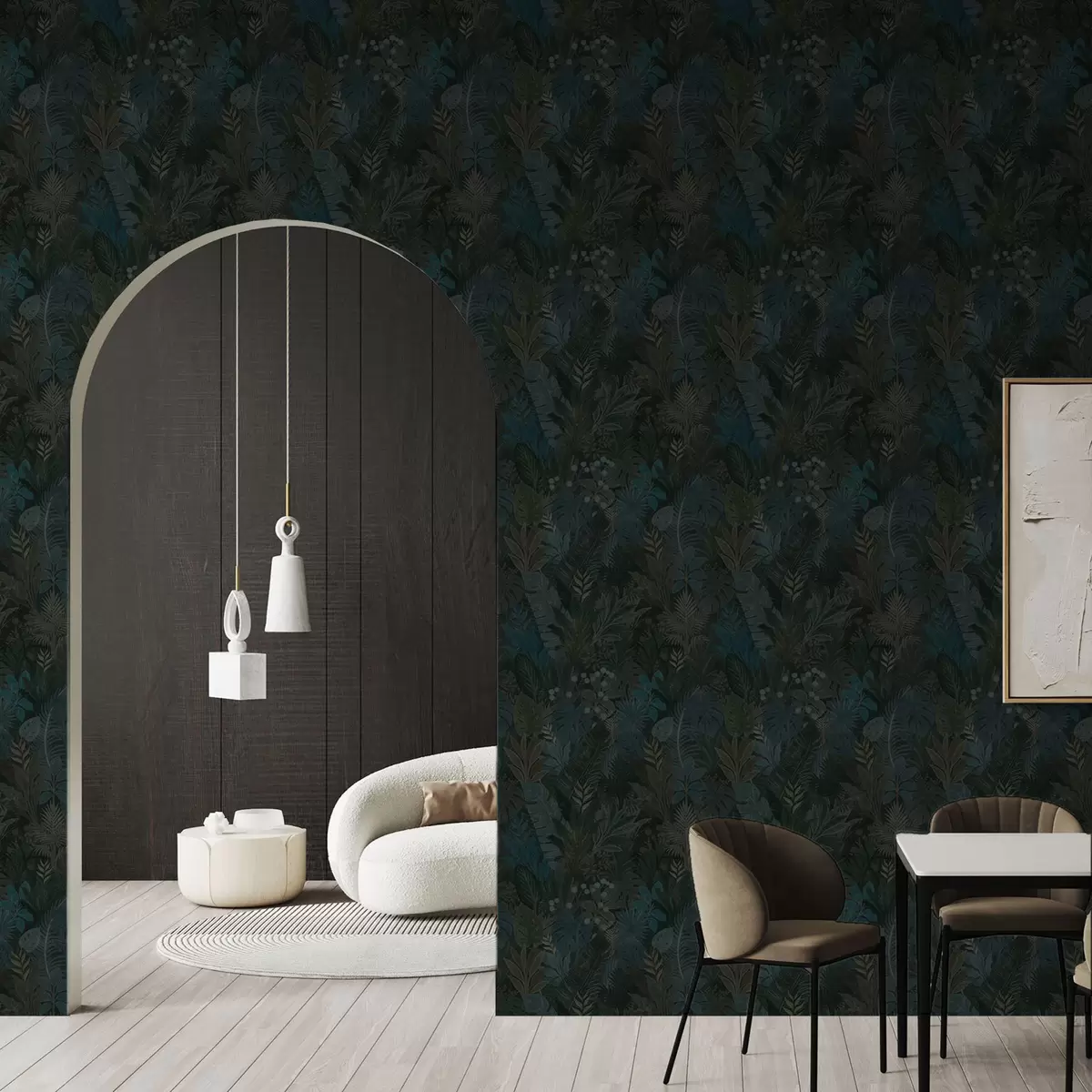 Tapeta Тамнозелено тропско лишће са плавим акцентима бр. a00327