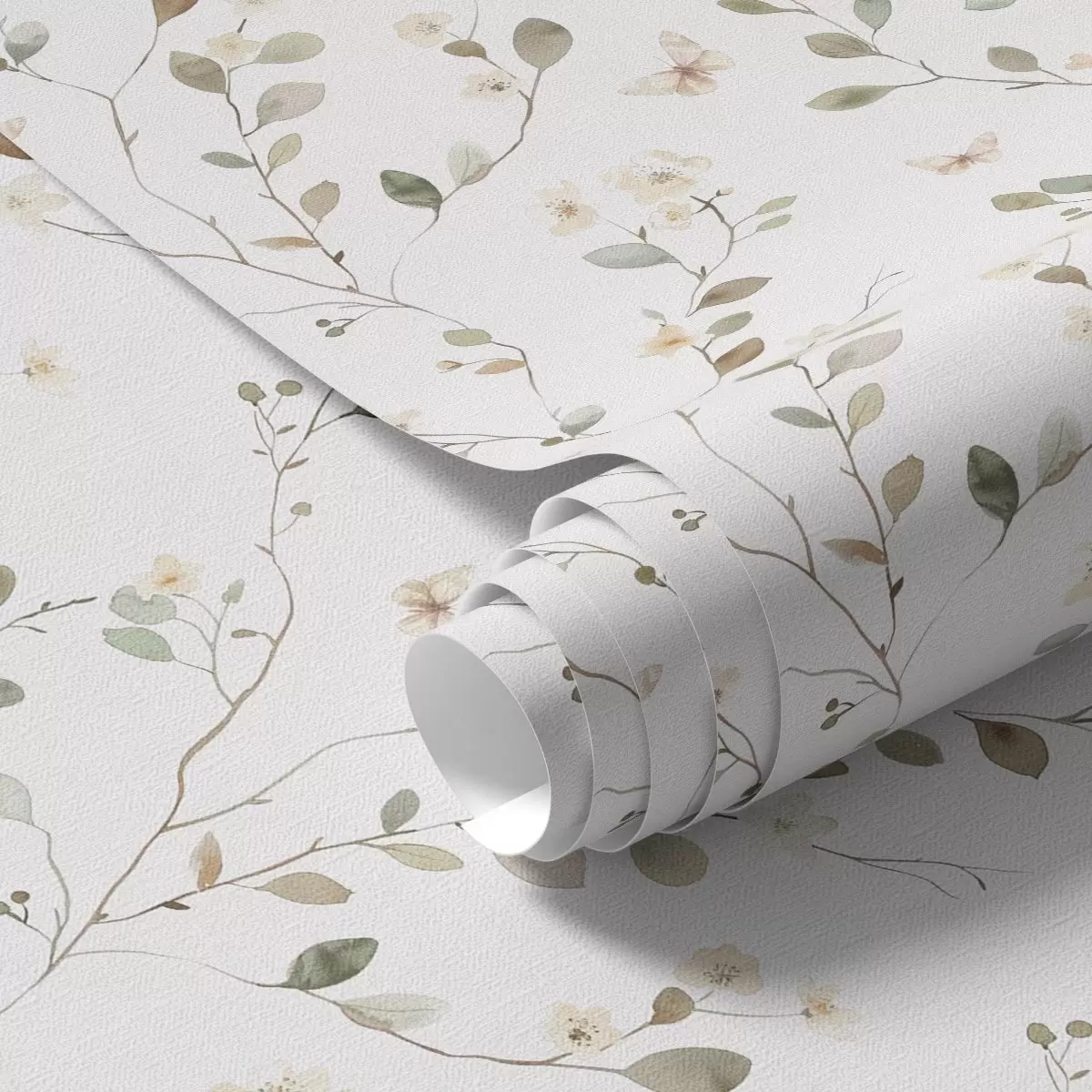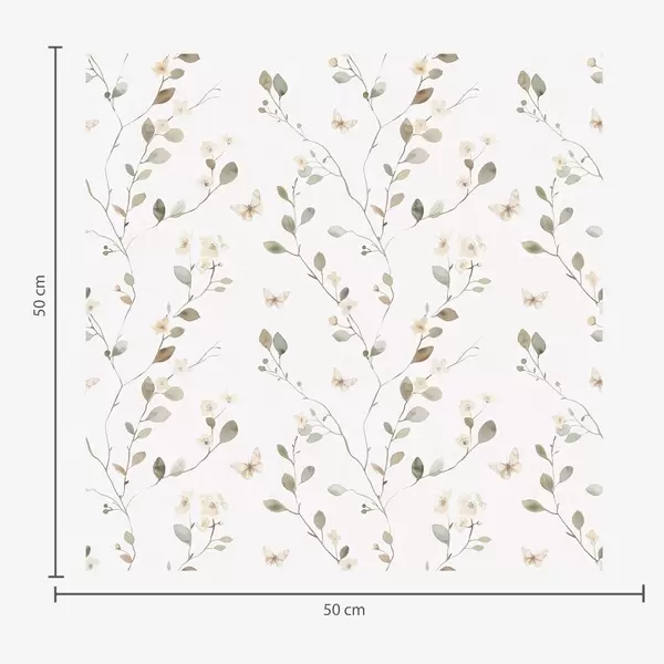 Tapeta Танке гране са цвећем и лептирима на белој позадини бр. a00342