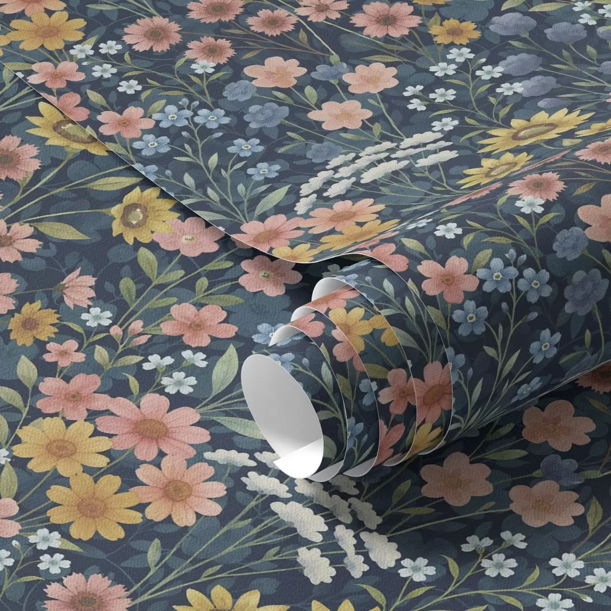 Tapeta Шарено акварелно ливадско цвеће на тамноплавој боји бр. a00381