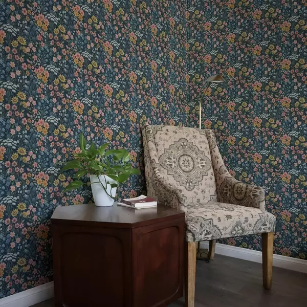 Tapeta Шарено акварелно ливадско цвеће на тамноплавој боји бр. a00381