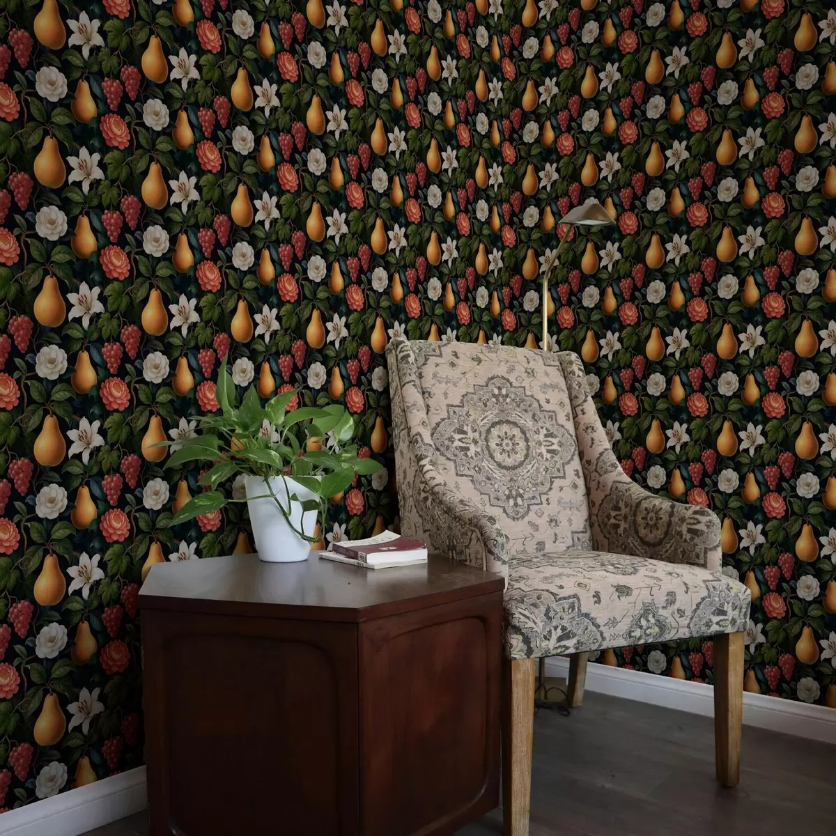 Tapeta Барокно воће и цвеће на драматичној тамној позадини бр. a00387