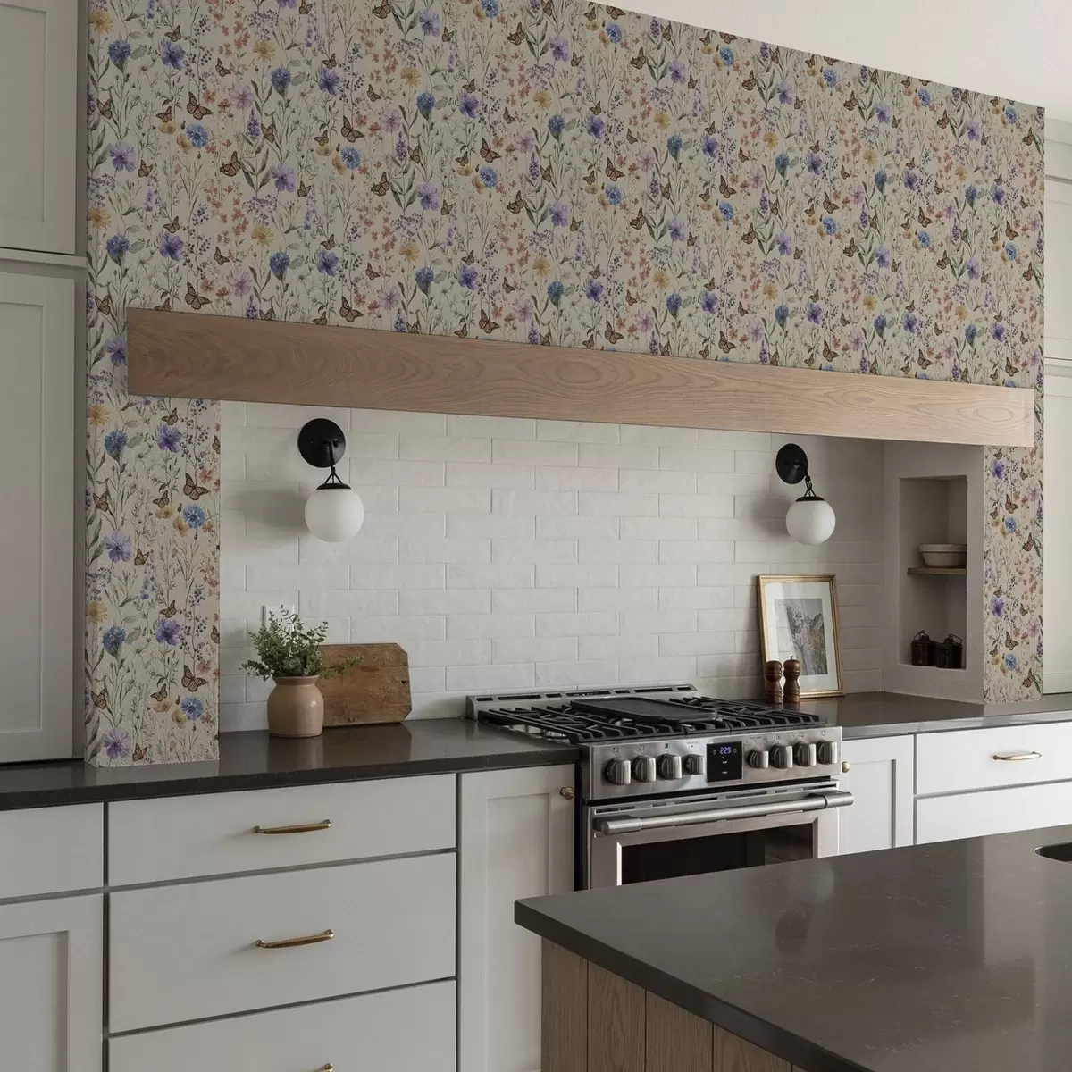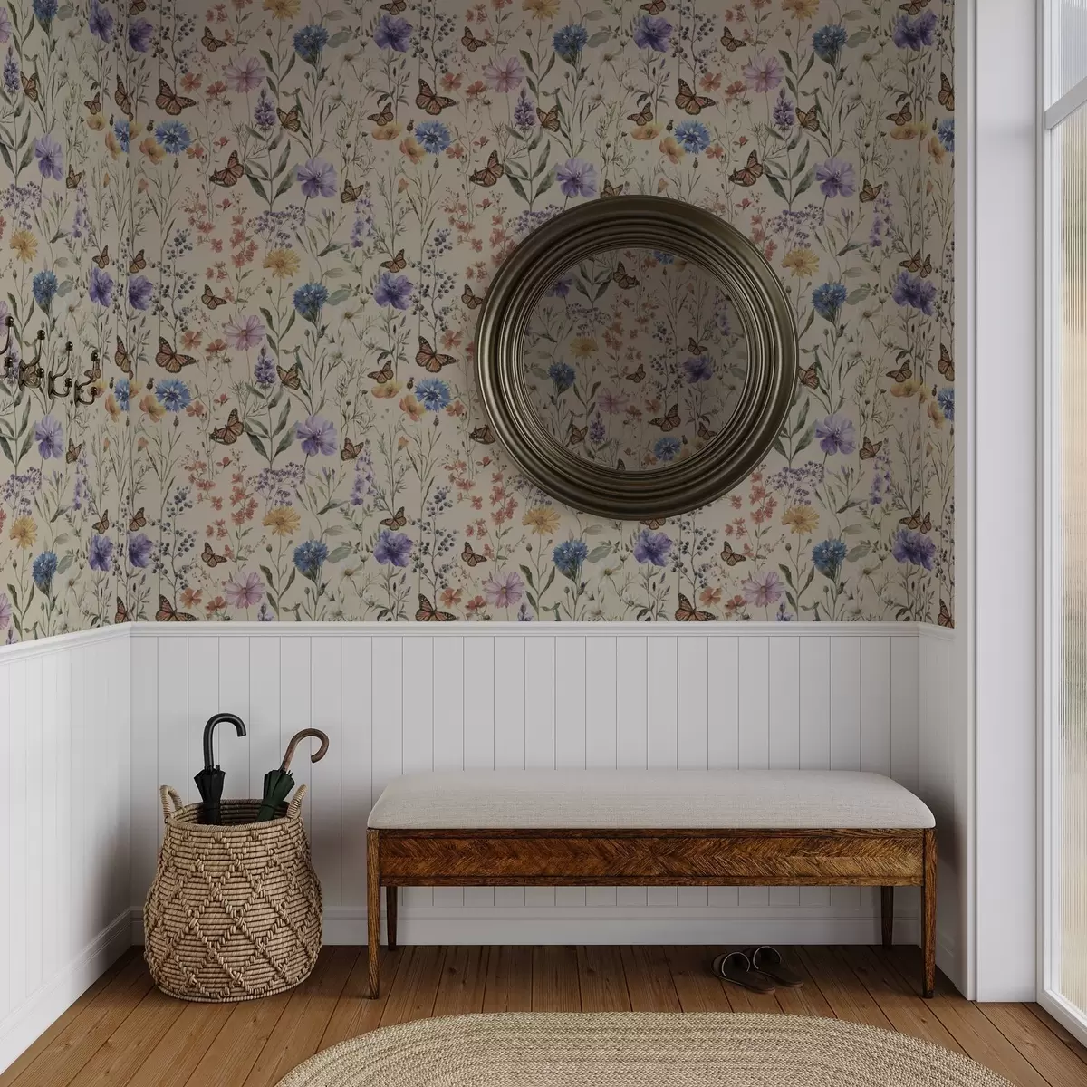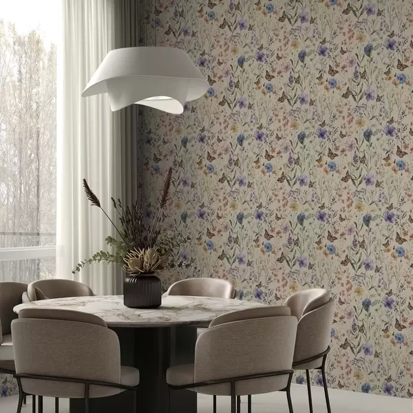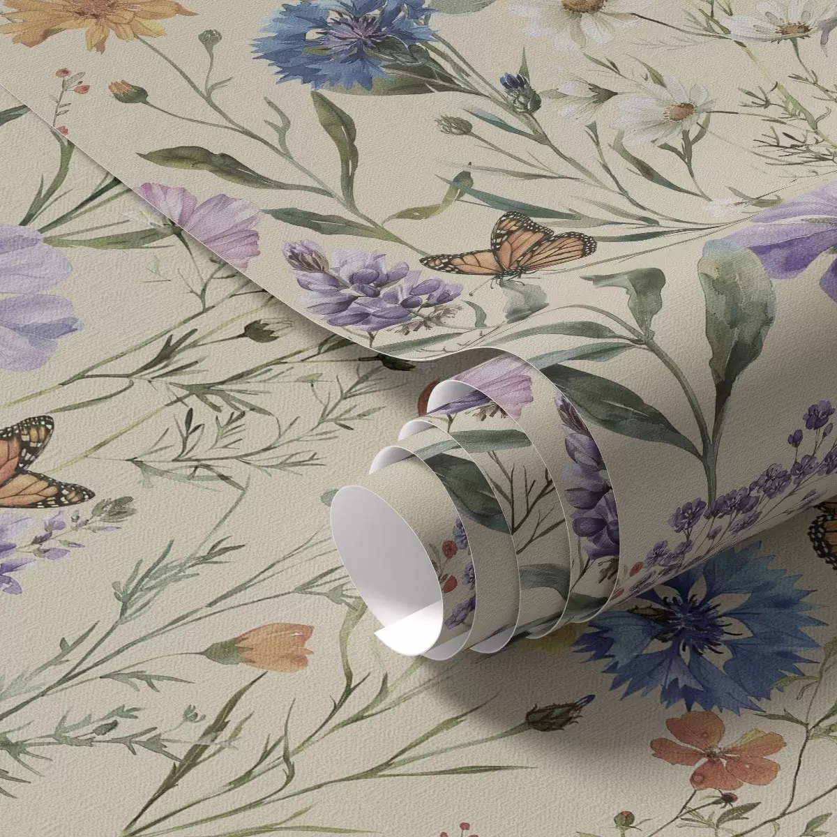 Tapeta Дивље цвеће и лептири у меком акварелном стилу бр. a00389