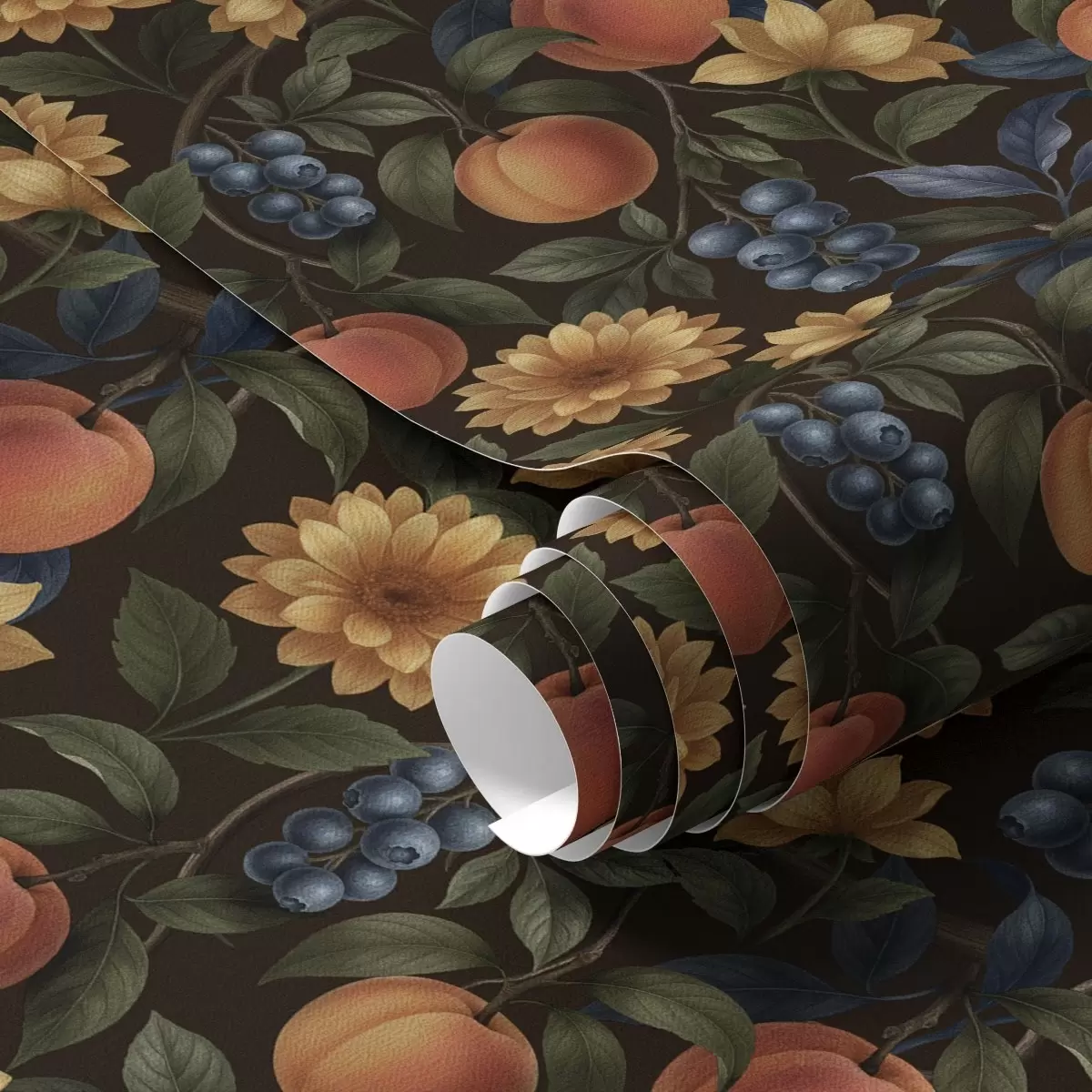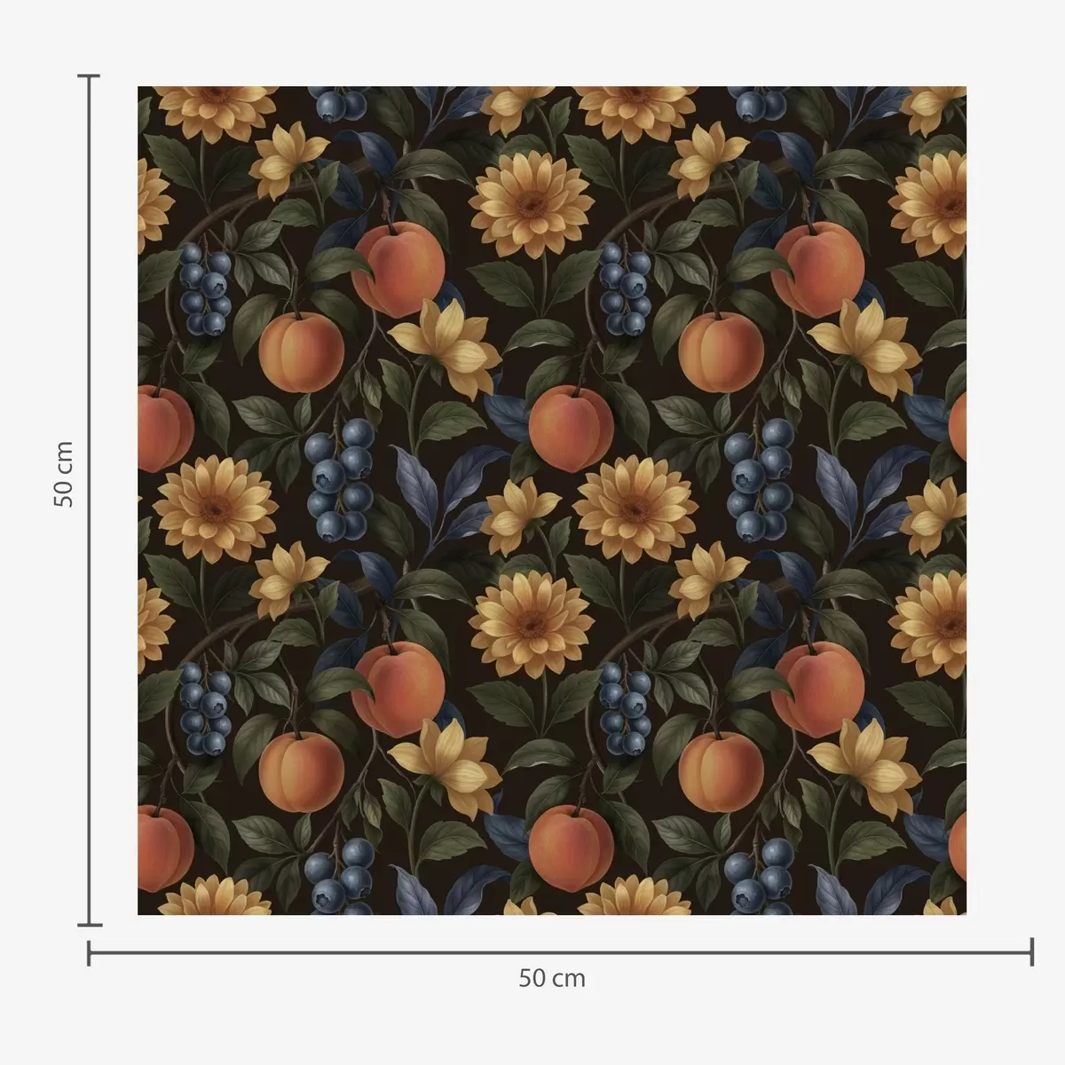 Tapeta Воће и жуто цвеће на тамној ботаничкој позадини бр. a00395