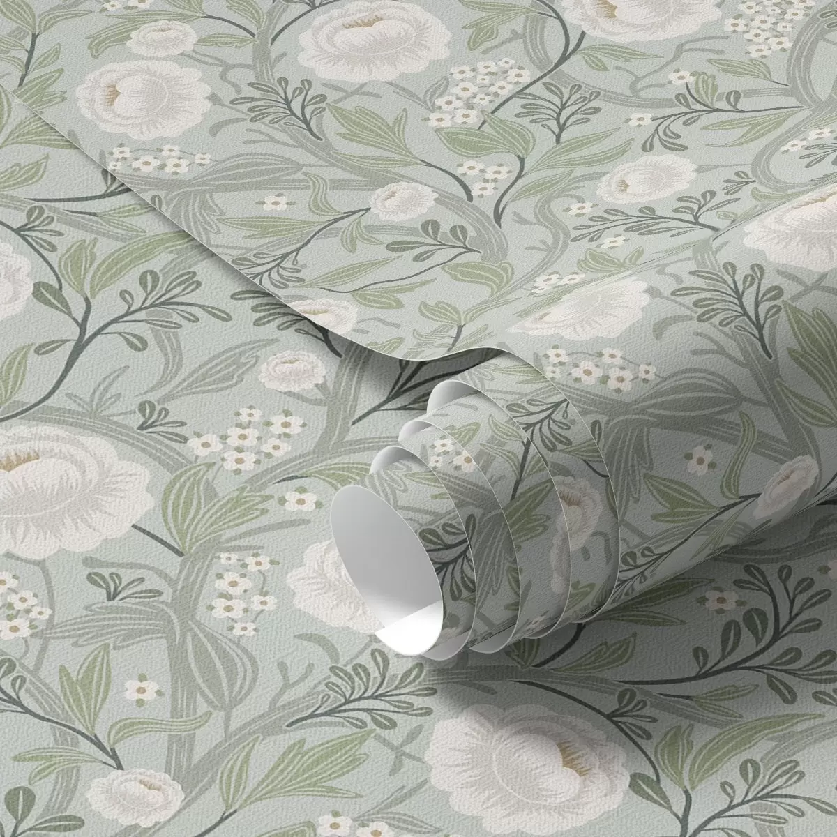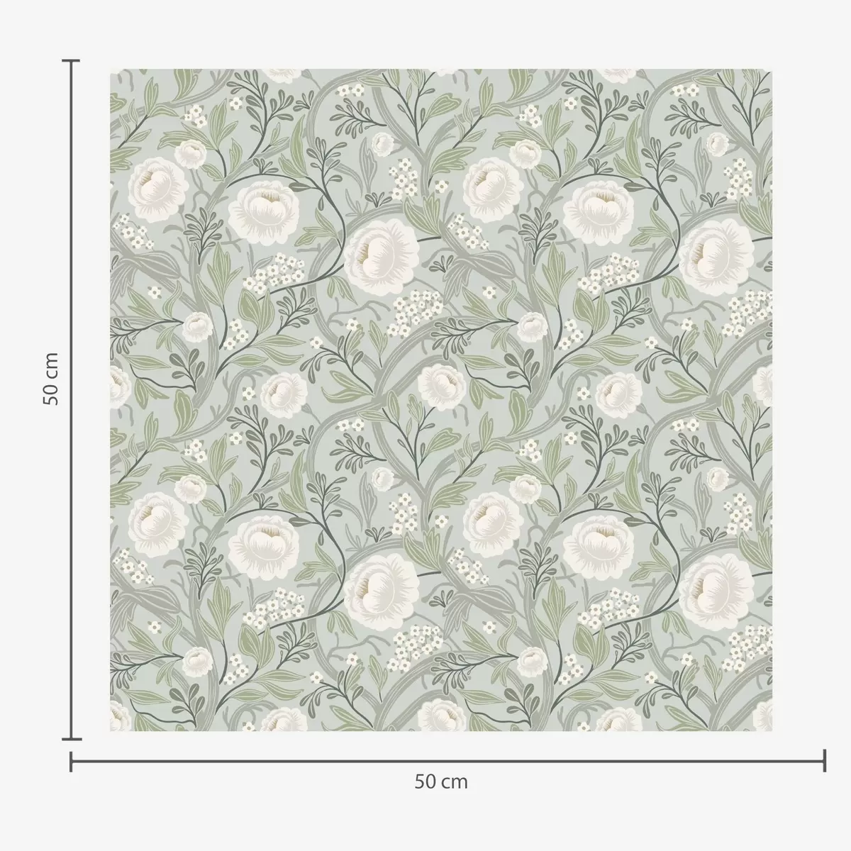 Tapeta Нежно зелено лишће и кремасто цвеће са зеленим лишћем и кремастим цвећем са грациозним лозама бр. a00398