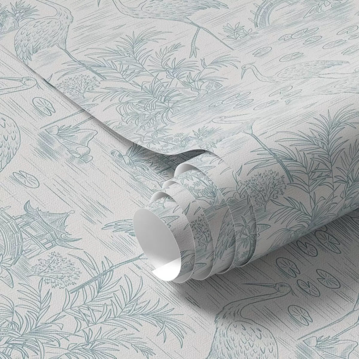 Tapeta Азијски пејзаж са ждраловима, мостовима и лотосима бр. a00405