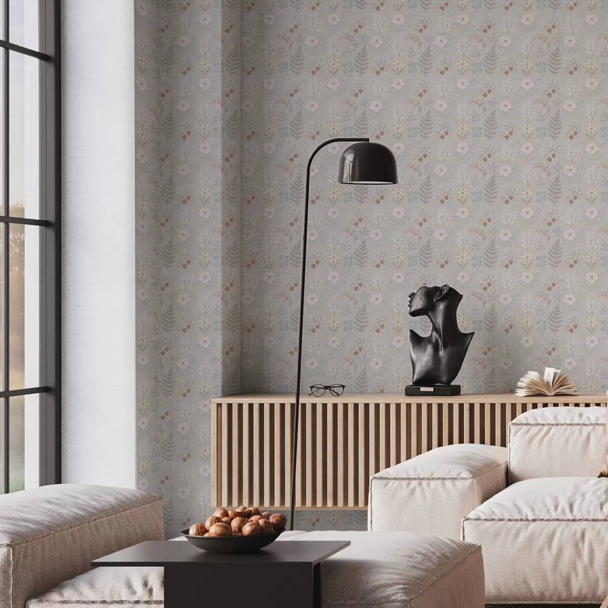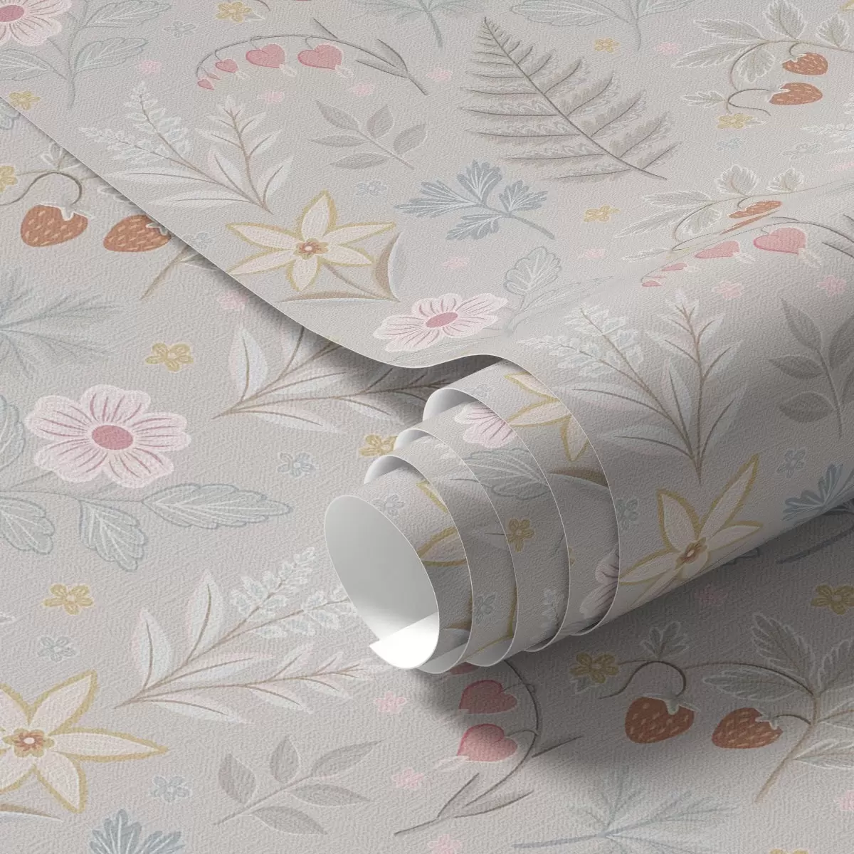 Tapeta Пастелно цвеће и бобице на светло сивој позадини бр. a00406