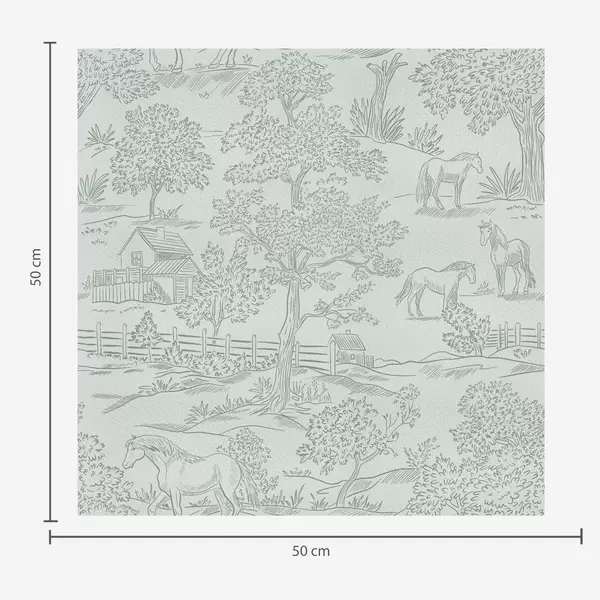 Tapeta Зелени монохроматски пејзаж са коњима и колибама бр. a00407