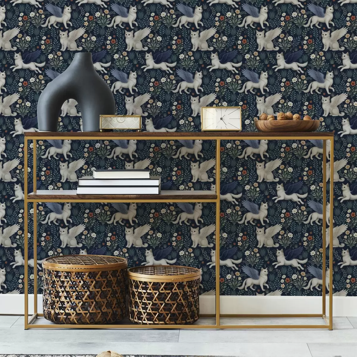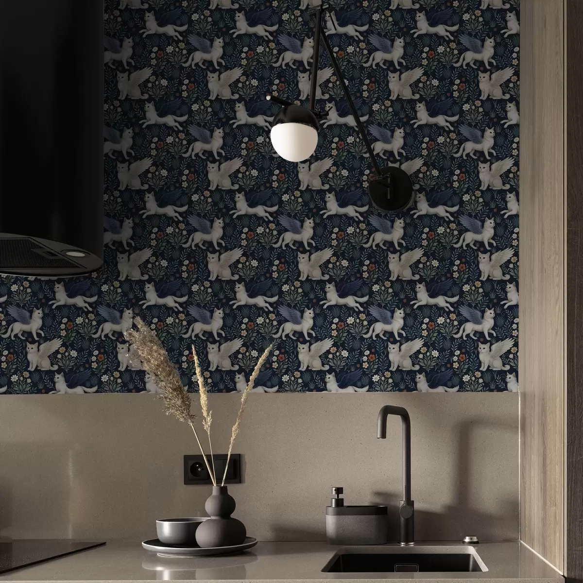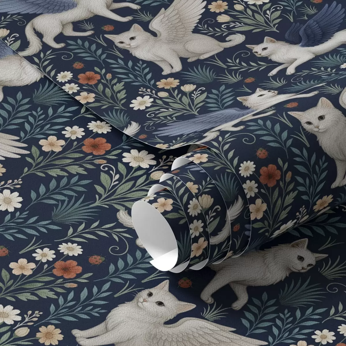 Tapeta Фантазијске мачке са крилима међу цвећем бр. a00408