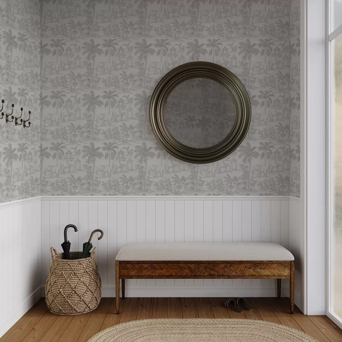 Tapeta Монохромни слонови и џунгла у графичком стилу бр. a00410