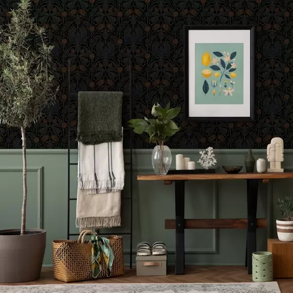 Tapeta Тамни цветни орнамент са наранџастим акцентима бр. a00411