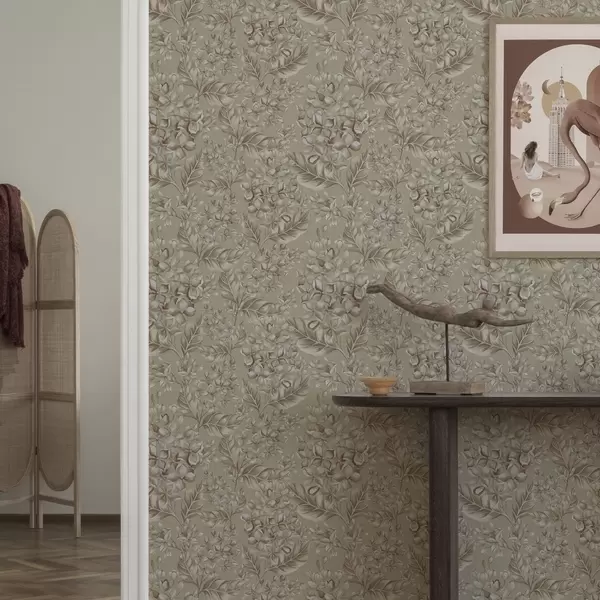 Tapeta Беж гране са белим цветовима у топлим нијансама бр. a00441