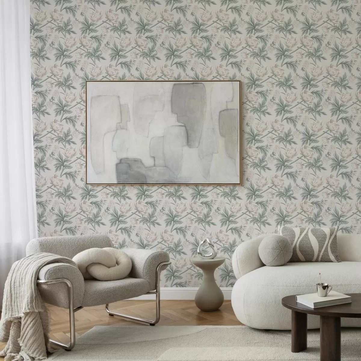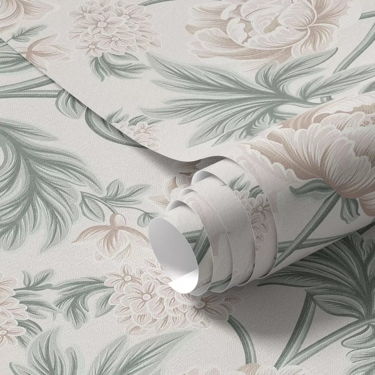 Tapeta Бујни божури у светло беж и зеленој боји, беж и зелена бр. a00445