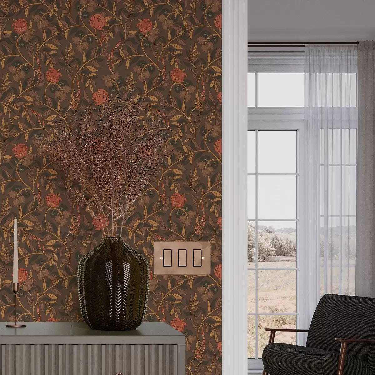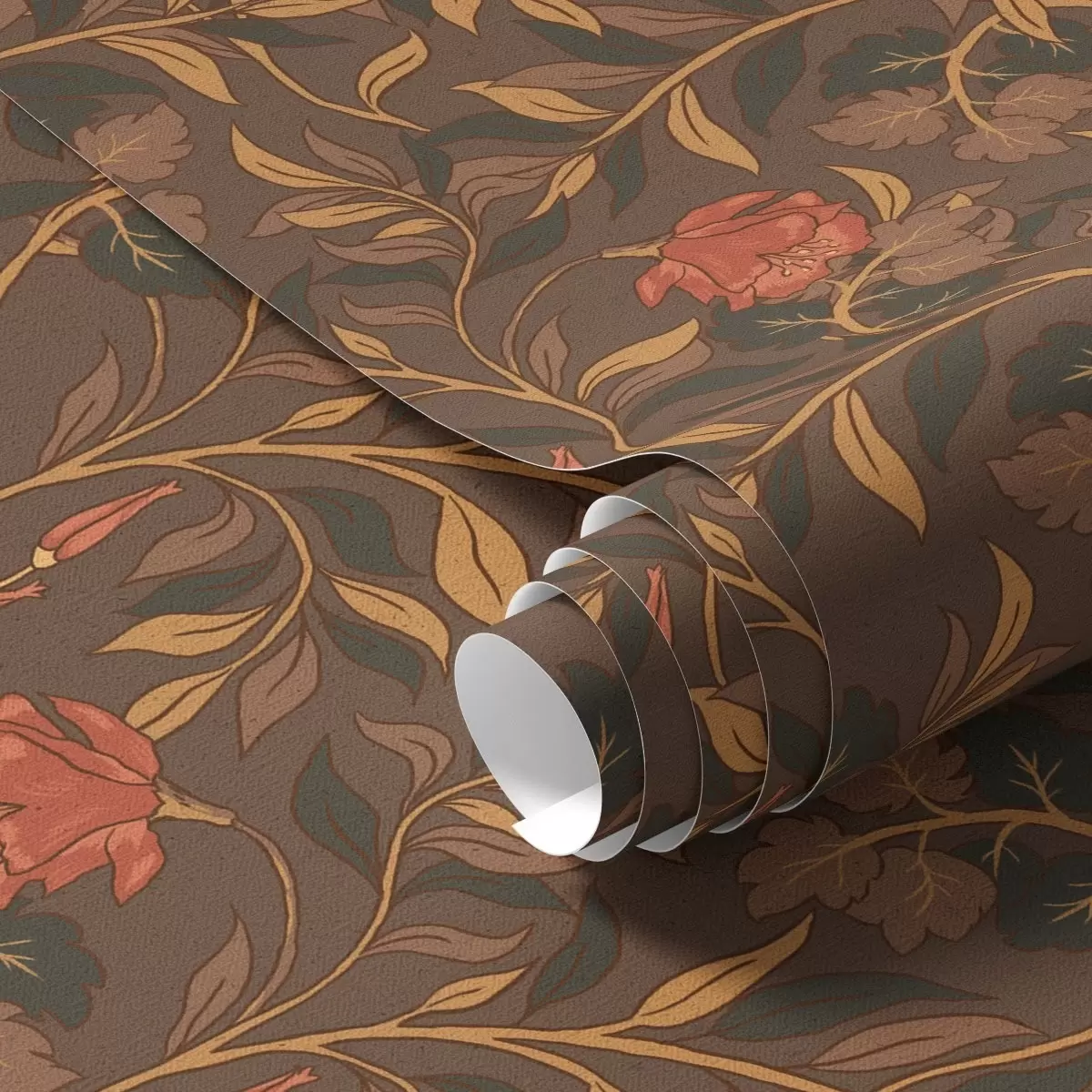Tapeta Цветајуће теракотне гране на смеђој позадини бр. a00460