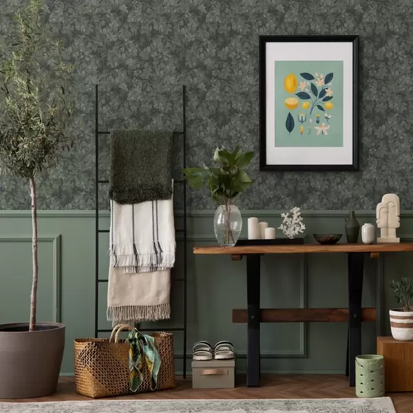 Tapeta Тамна текстура лишћа са жировима у дубоко зеленој боји бр. a00461