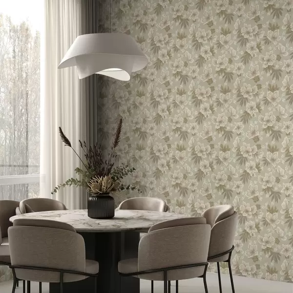Tapeta Кремасто цвеће на маслинасто зеленој позадини бр. a00462