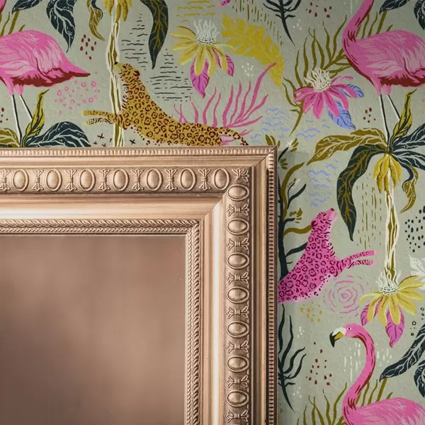 Tapeta Светли фламингоси и леопарди међу тропским биљкама бр. a00470