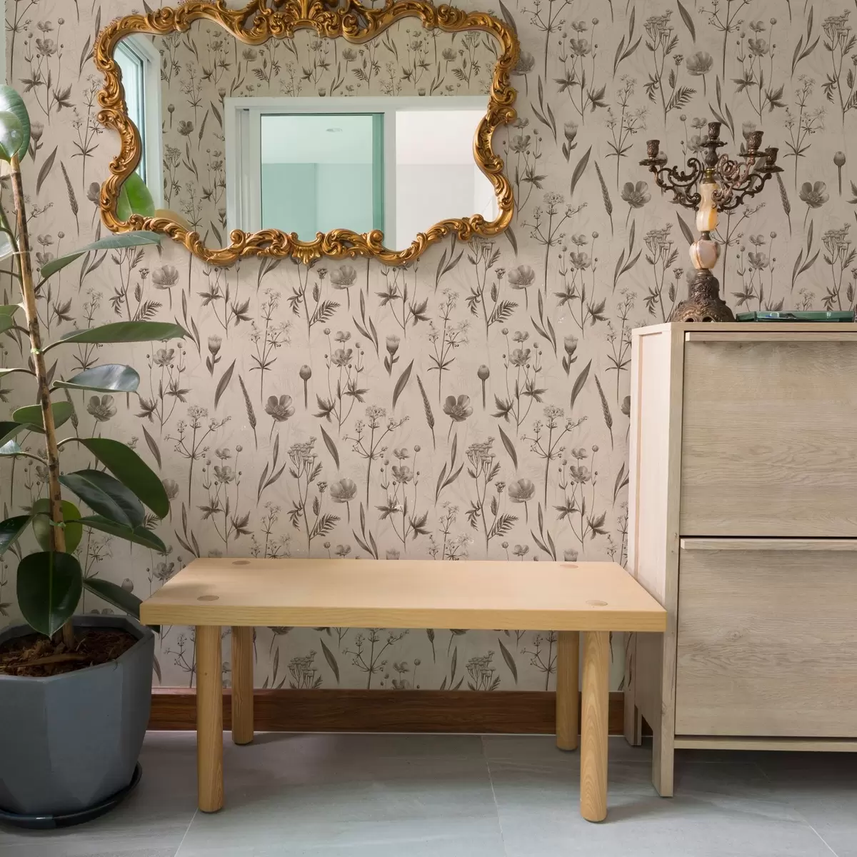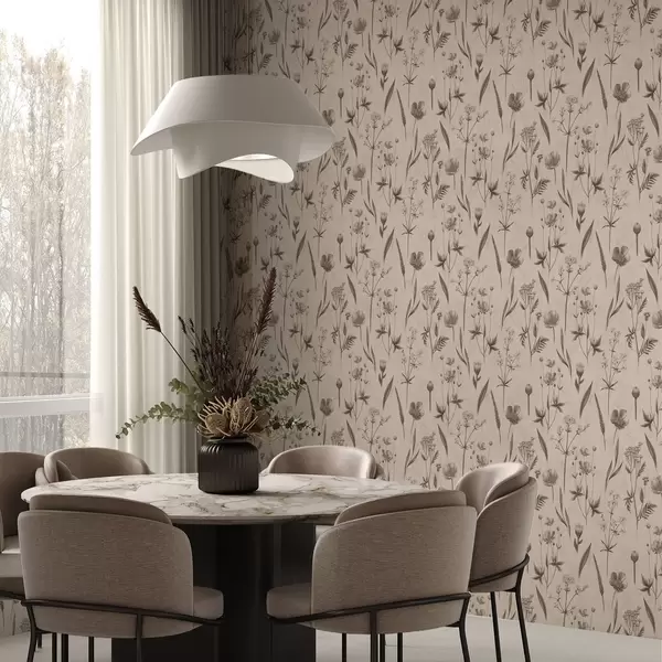 Tapeta Жуто цвеће и зеленило у сиво-смеђим тоновима бр. a00472v1