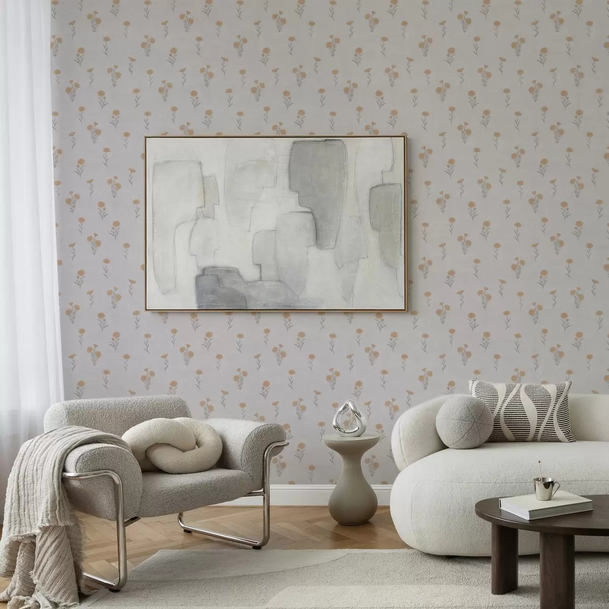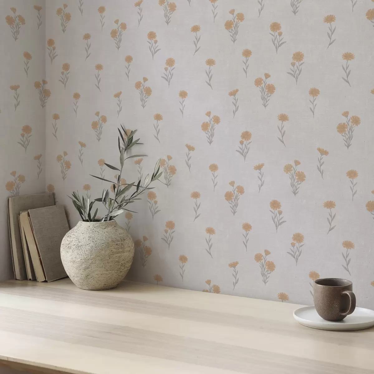 Tapeta Мали наранџасти цветови на светло сивој позадини бр. a00486