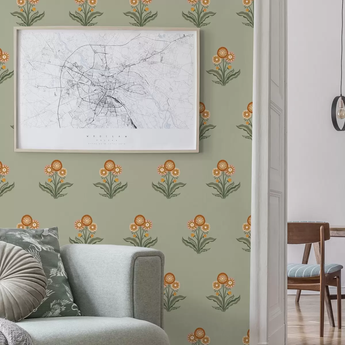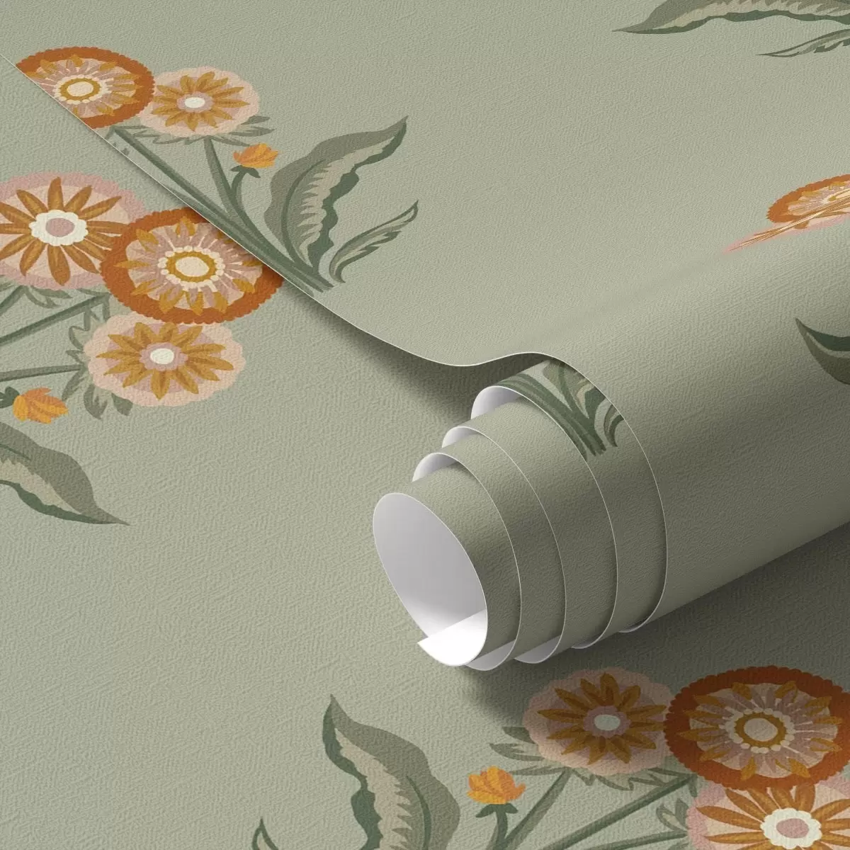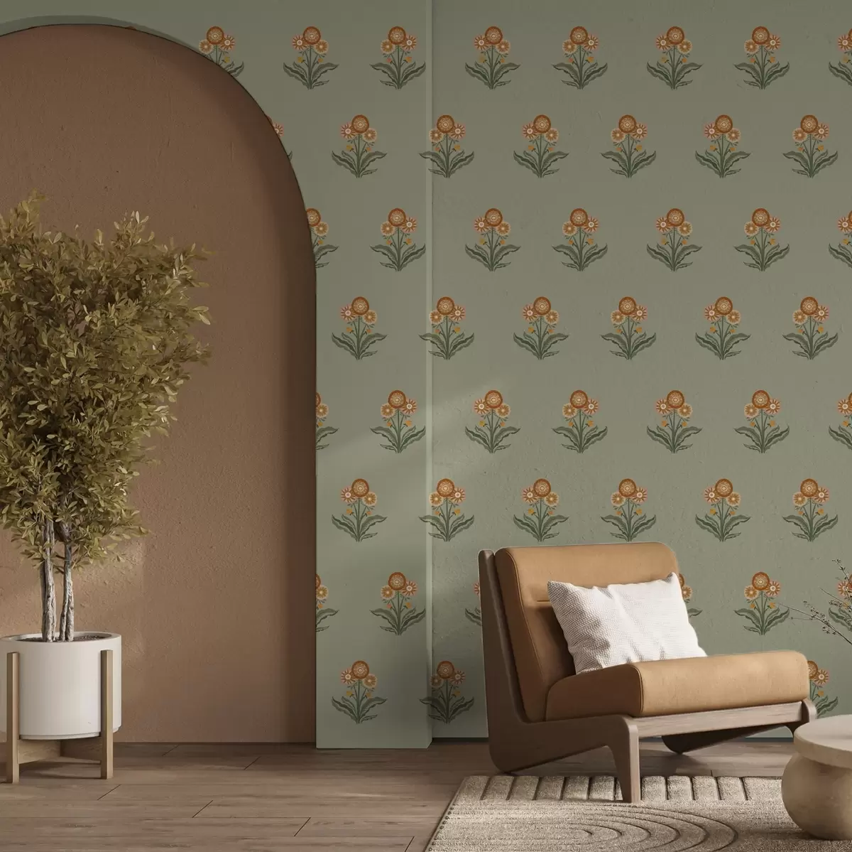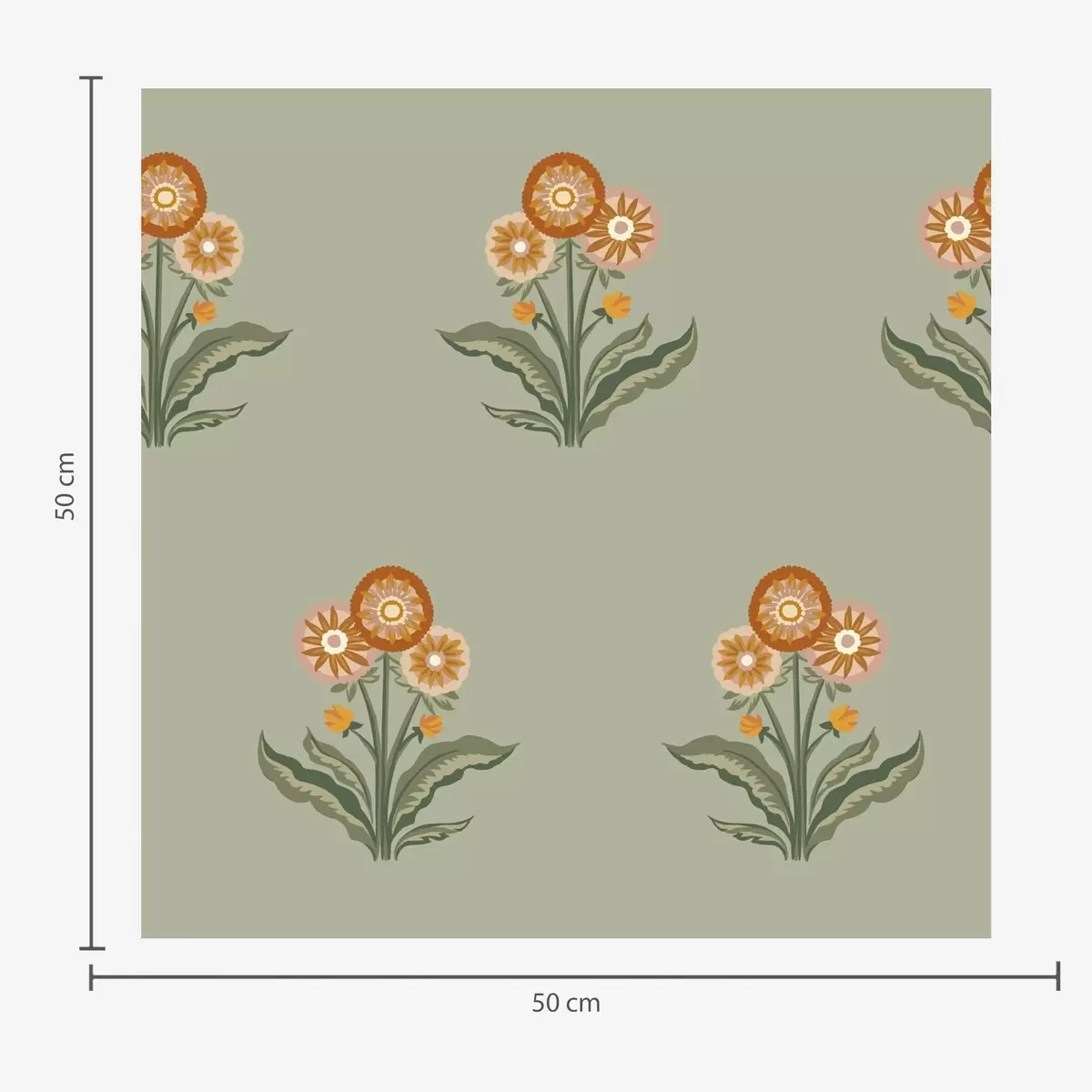 Tapeta Стилизовано цвеће на маслинастој позадини, топли тонови бр. a00494v2