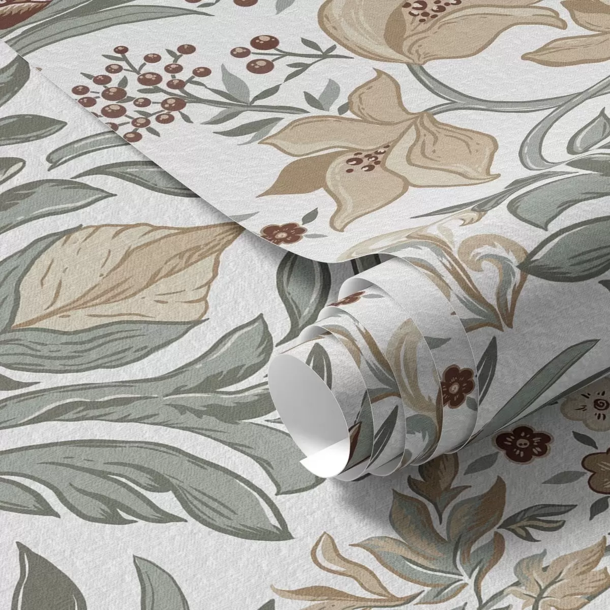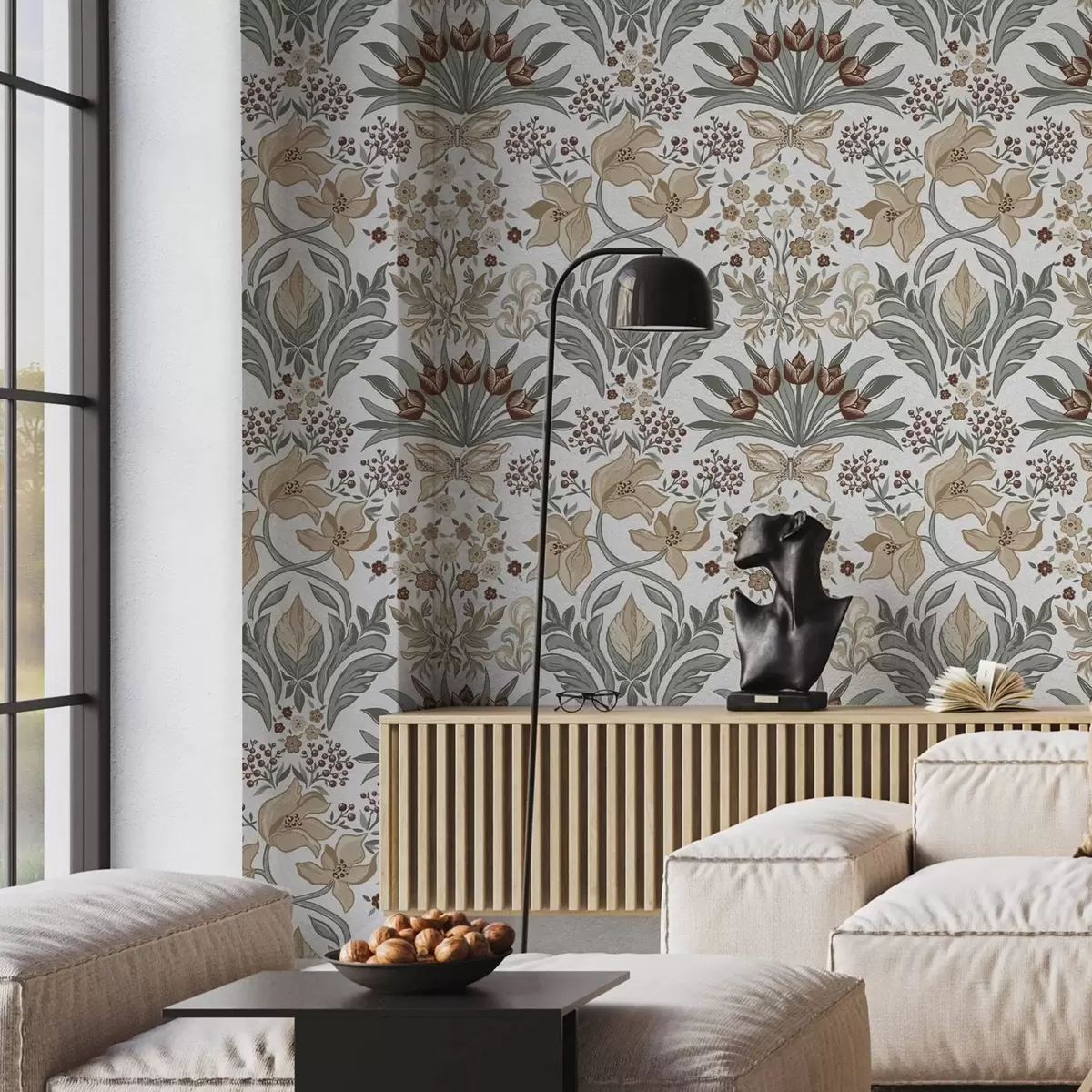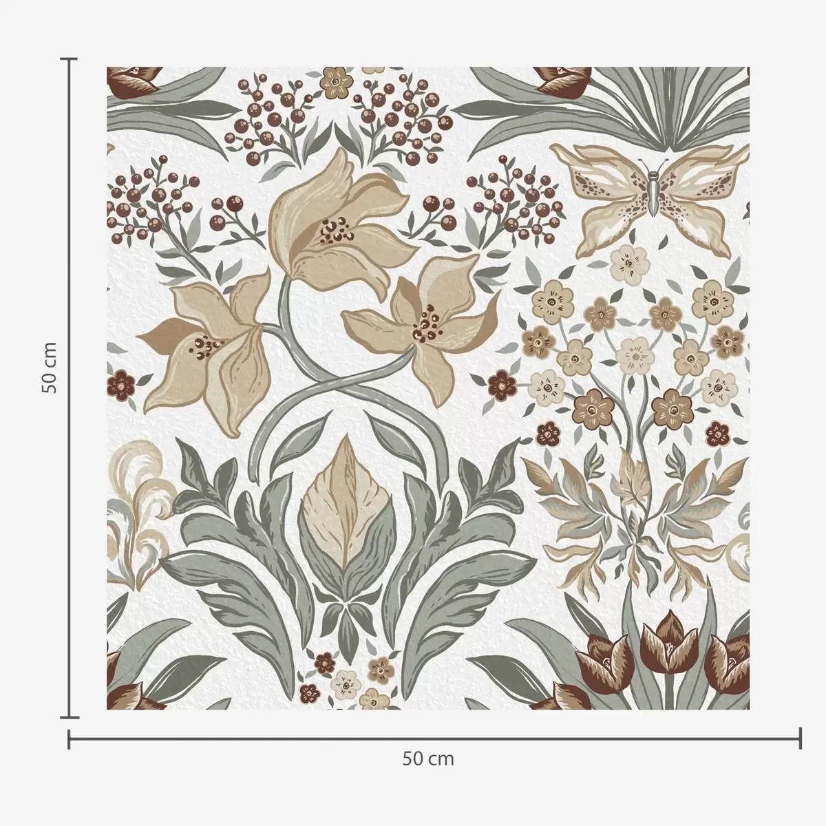 Tapeta Декоративни љиљани и лептир на белој позадини бр. a00500v1