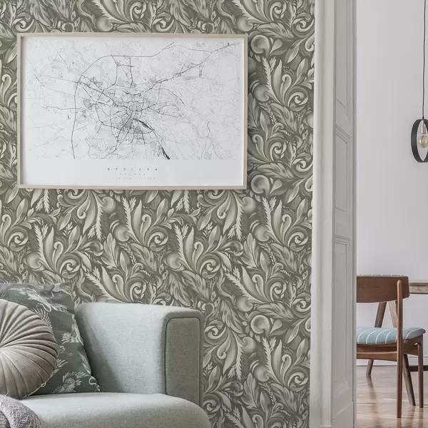 Tapeta Акантови свици у маслинасто-беж палети бр. a00501