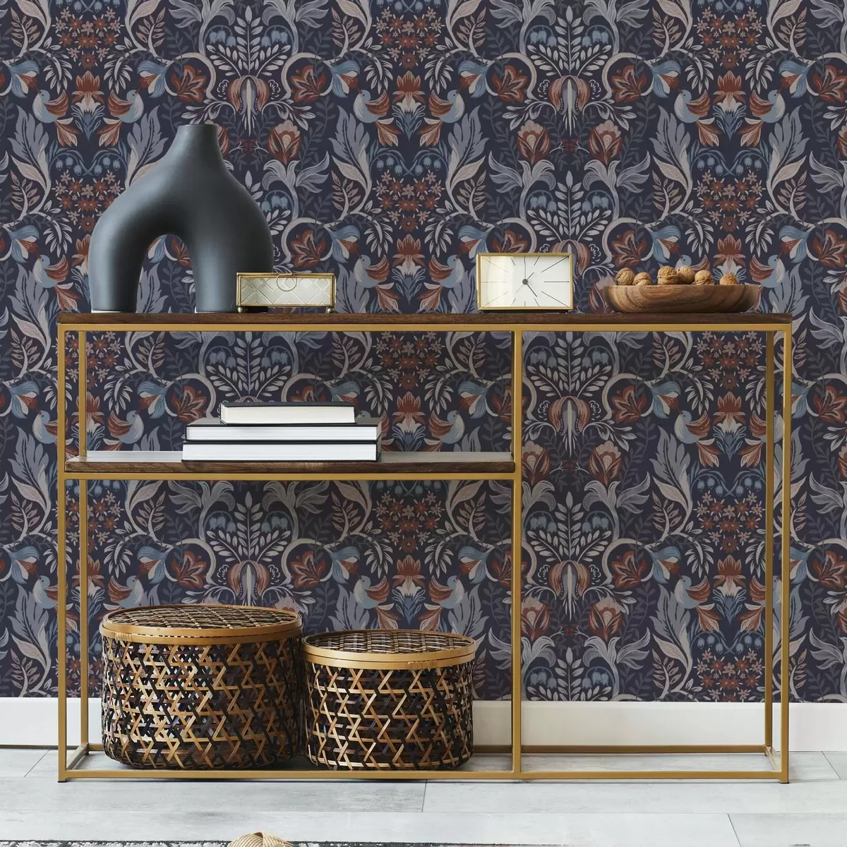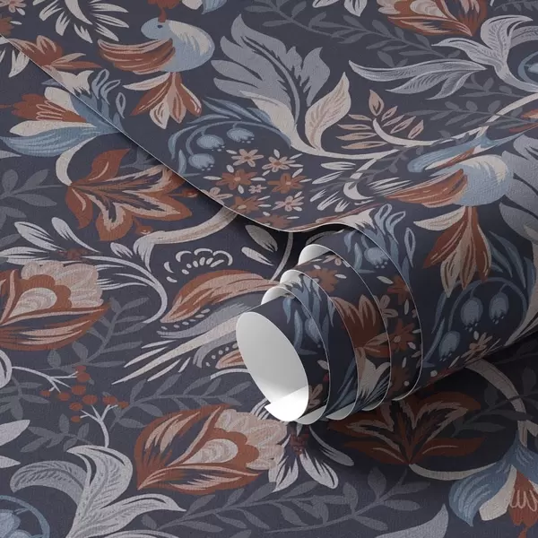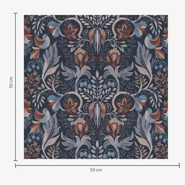 Tapeta Народно цвеће и птице на тамноплавој позадини бр. a00502
