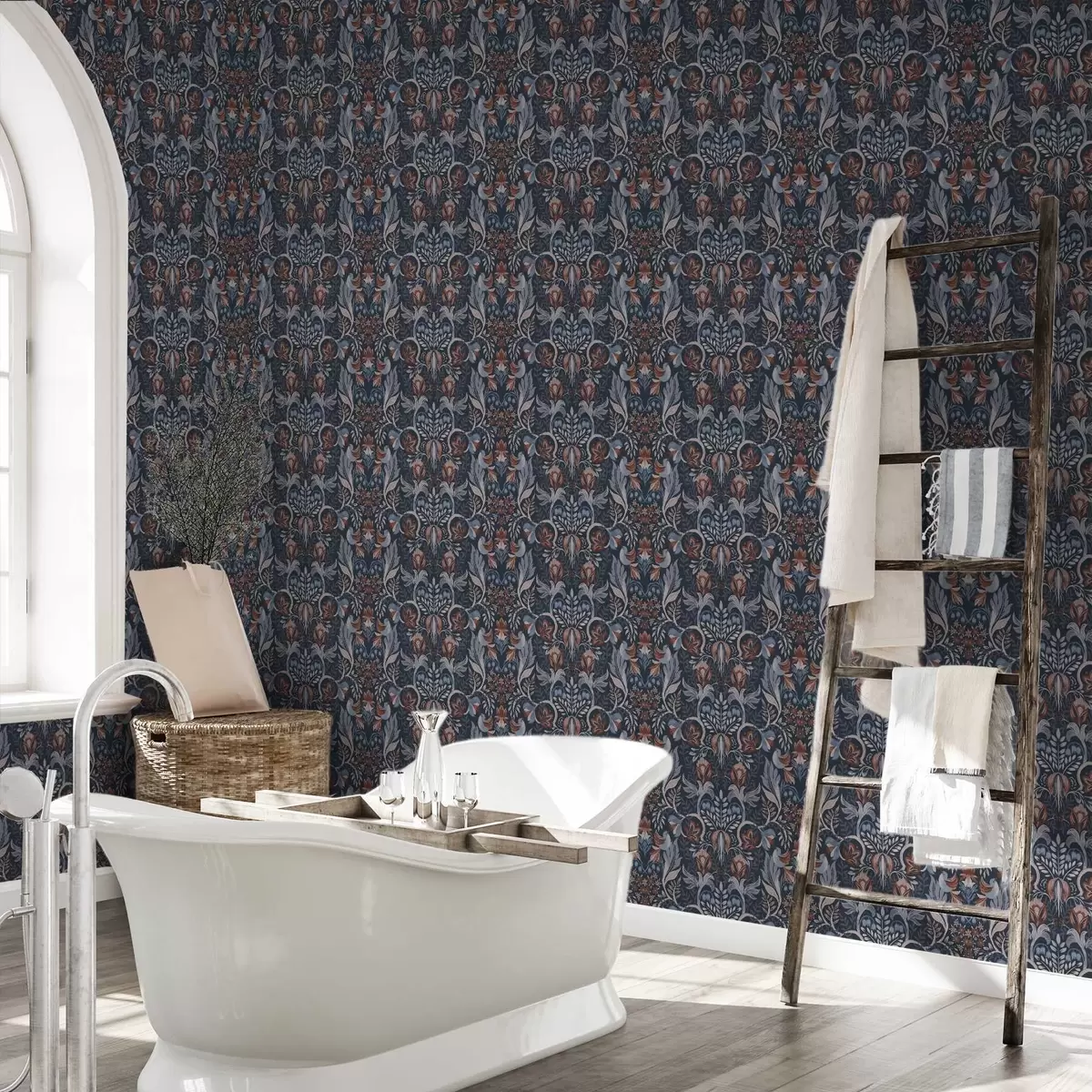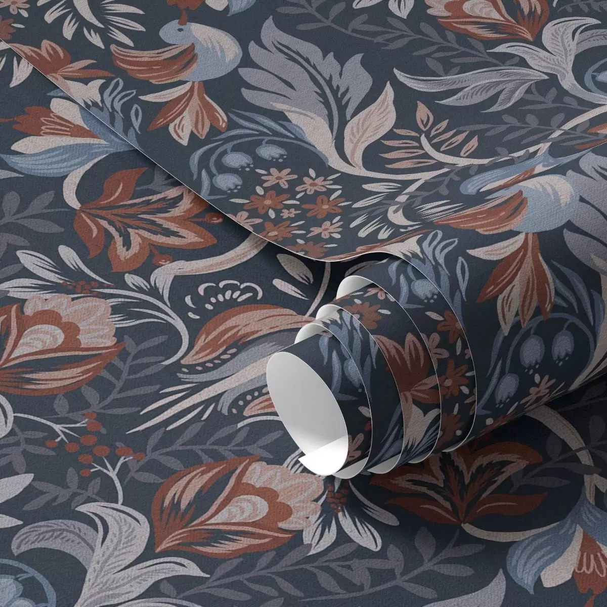 Tapeta Народни украс са птицама, дубоко индиго боје бр. a00502v1