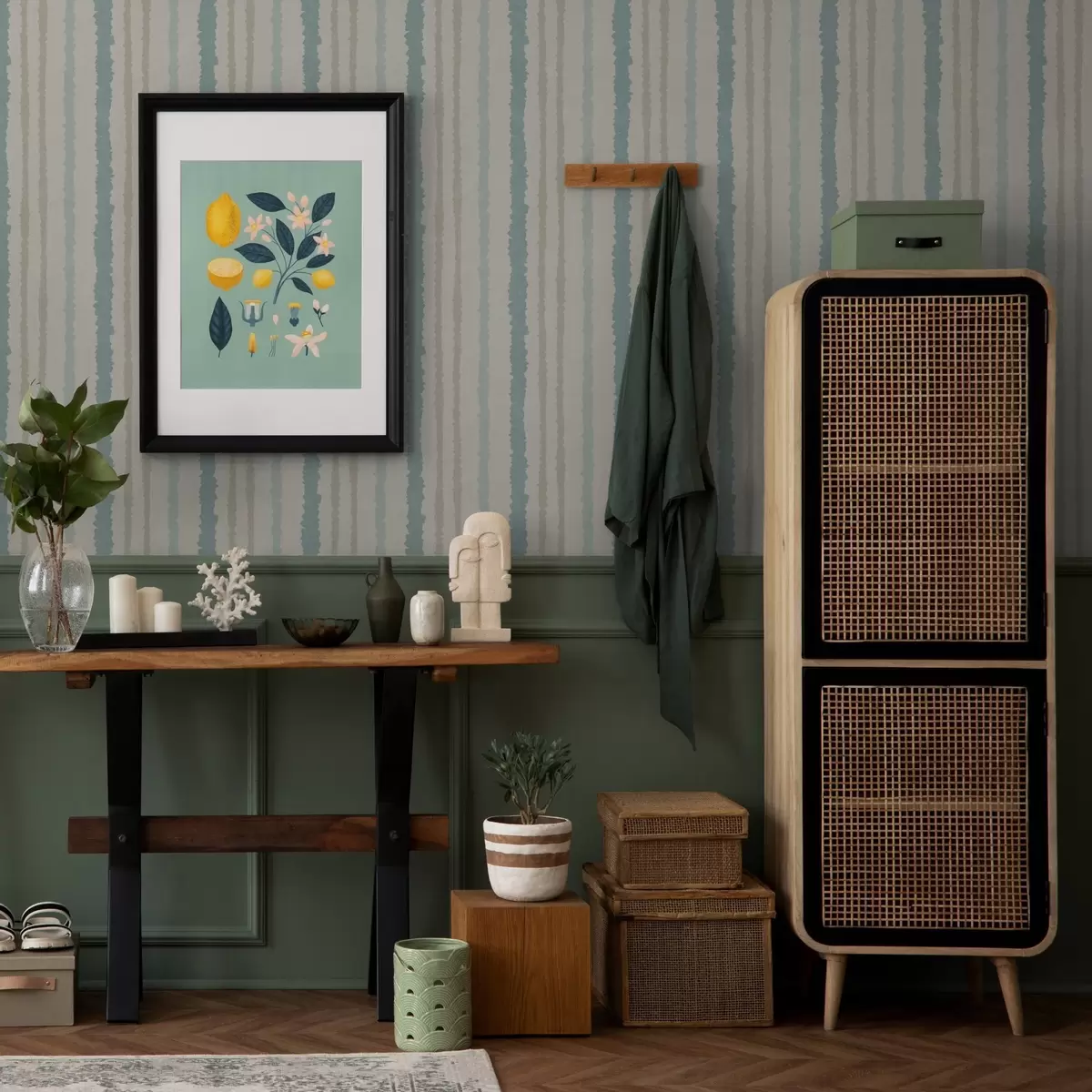 Tapeta Тиркизно-беж пруге са ручно осликаним ефектом бр. a00510v1