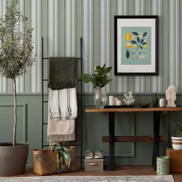 Tapeta Зелене пруге са белим интервалима и танким линијама бр. a00526