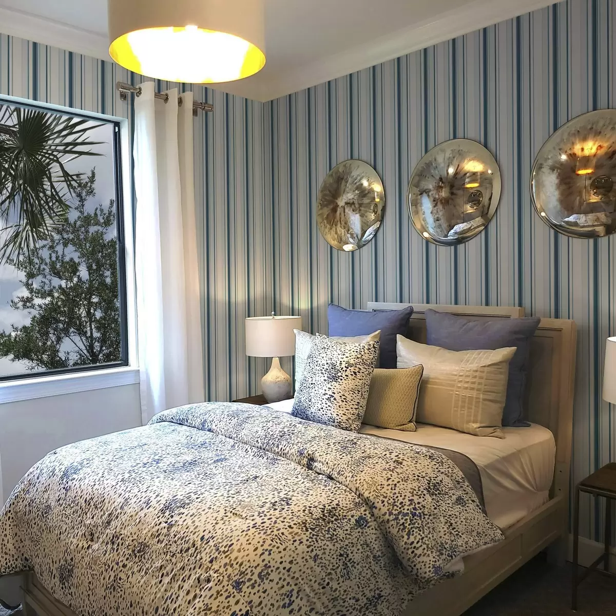 Tapeta Тиркизне и плаве пруге различитих ширина на светлој позадини бр. a00530