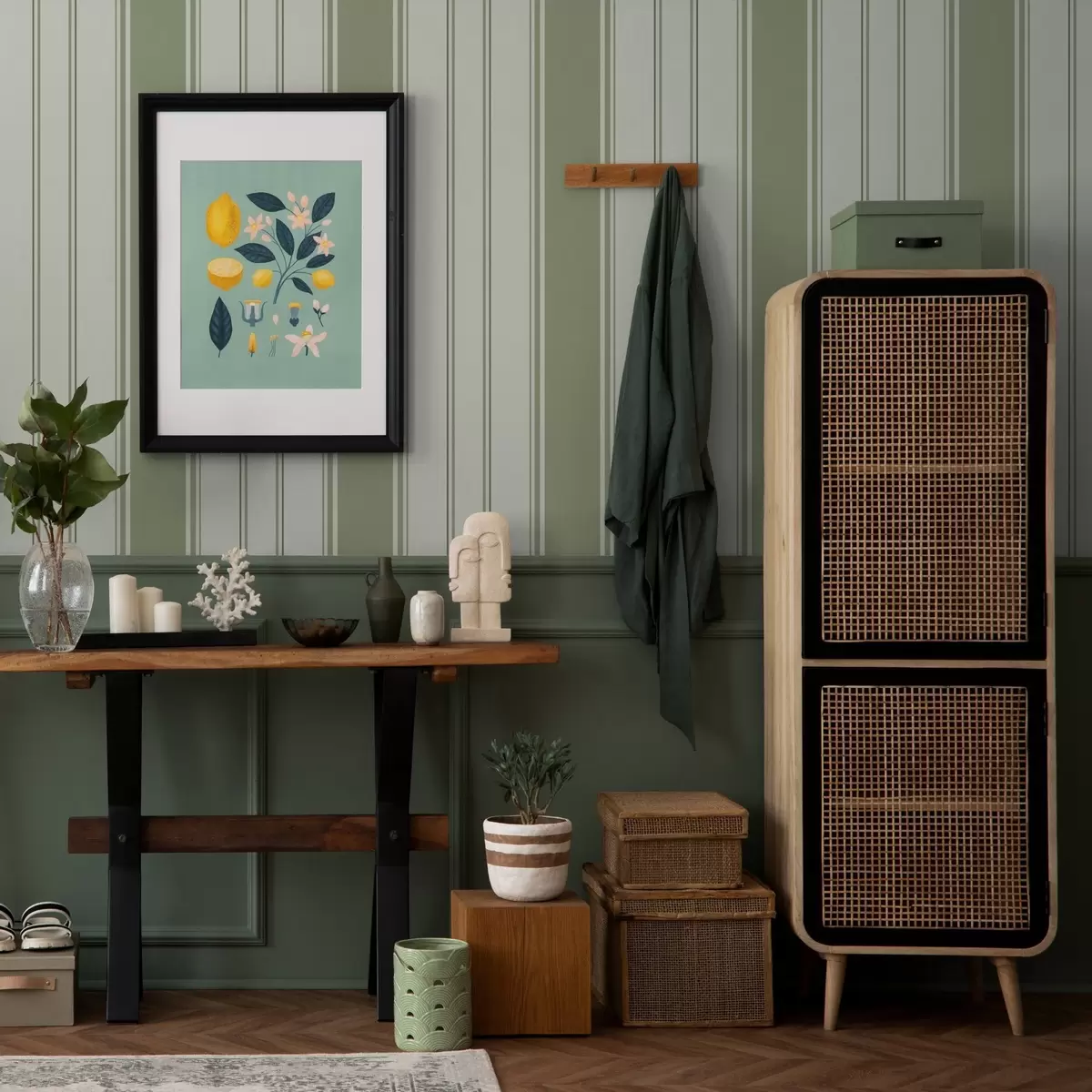 Tapeta Крем позадина са широким светлозеленим пругама бр. a00561