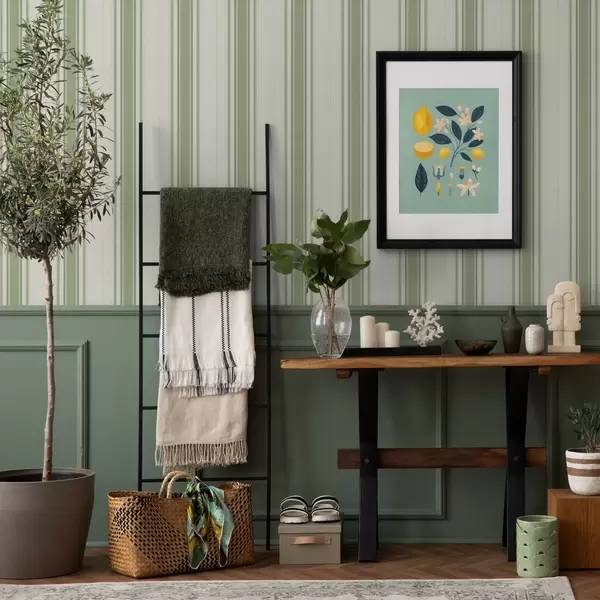 Tapeta Светла позадина са тамнозеленим акцентним пругама бр. a00562