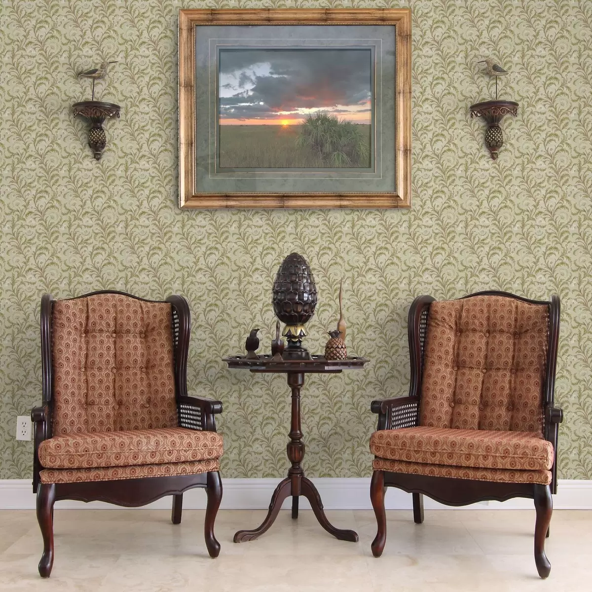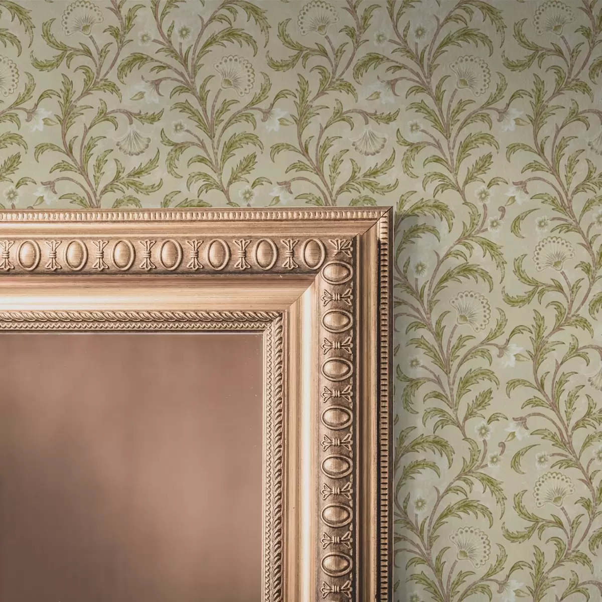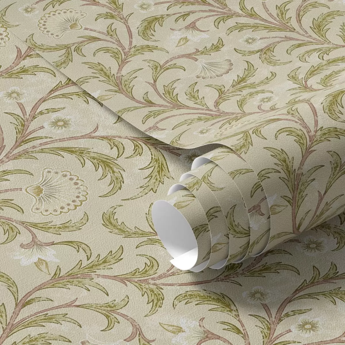 Tapeta Винтаж украс са свицима и цвећем, беж и маслинасто бр. a00574