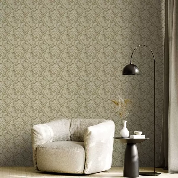 Tapeta Винтаж украс са свицима и цвећем, беж и маслинасто бр. a00574