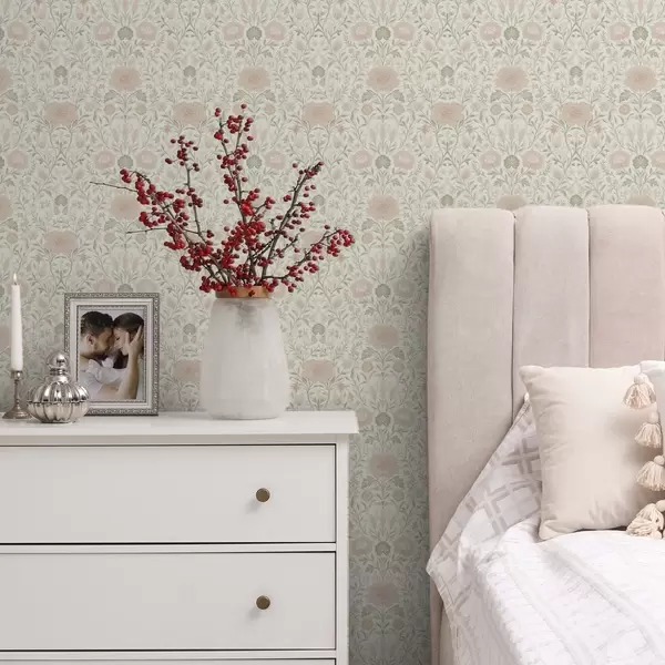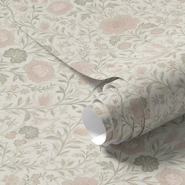 Tapeta Морисов стил: божури и траве у нежним беж-зеленим тоновима бр. a00581