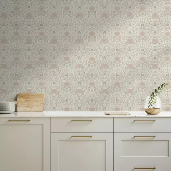 Tapeta Морисов стил: божури и траве у нежним беж-зеленим тоновима бр. a00581