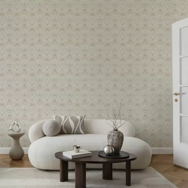 Tapeta Морисов стил: божури и траве у нежним беж-зеленим тоновима бр. a00581