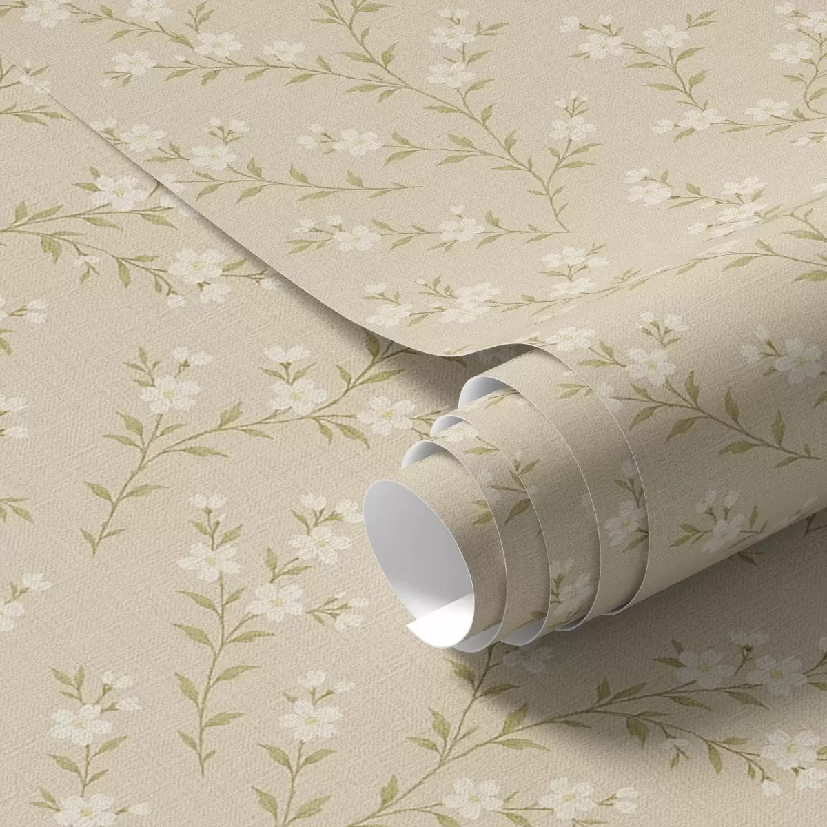 Tapeta Мале беле гранчице на беж платненој позадини бр. a00584