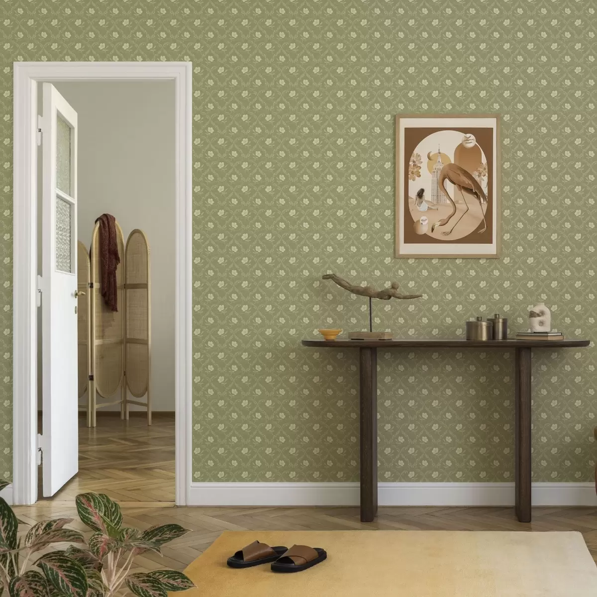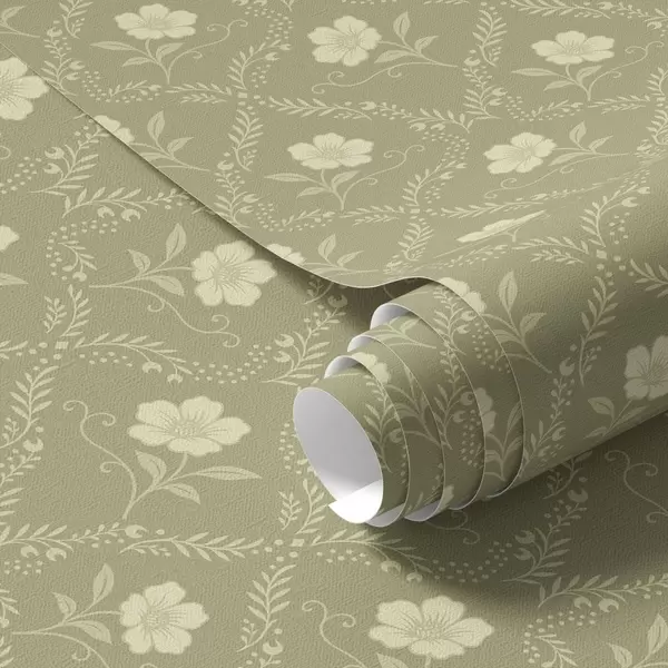 Tapeta Маслинова решетка са кремастим цвећем, ретро украс бр. a00585