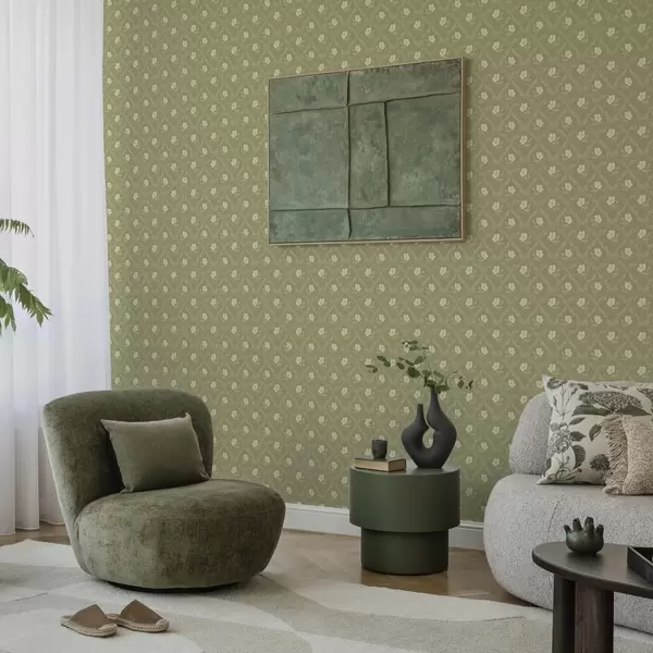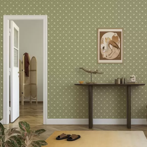 Tapeta Маслинова решетка са кремастим цвећем, ретро украс бр. a00585