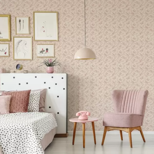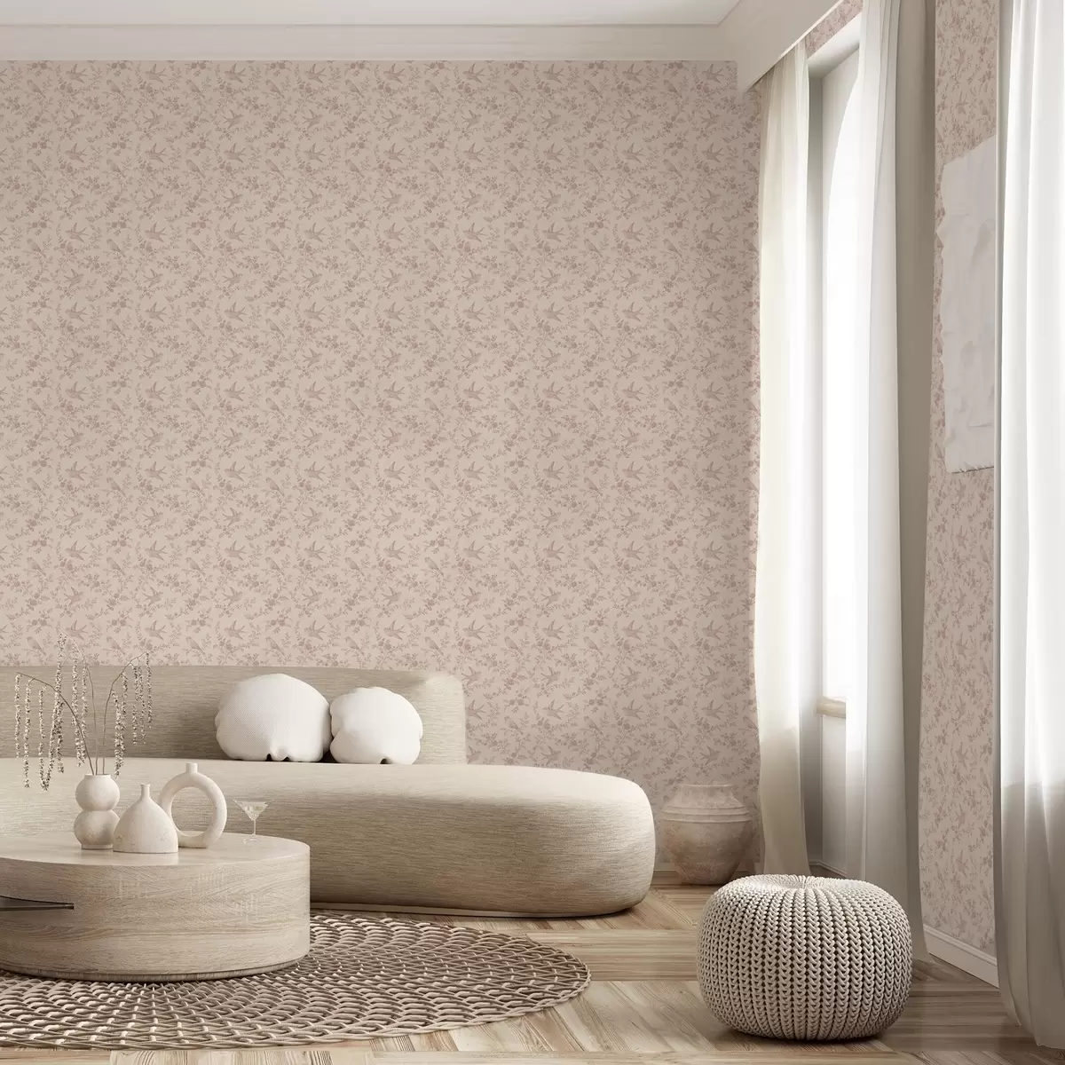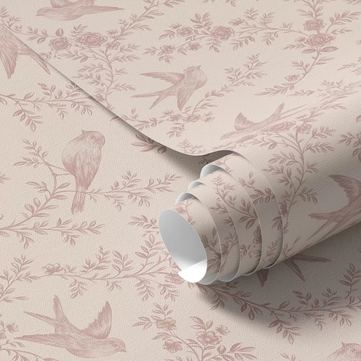 Tapeta Птице и руже, винтаге узорак на прашкасто ружичастој боји бр. a00587